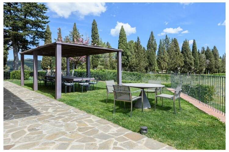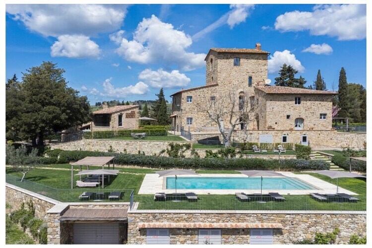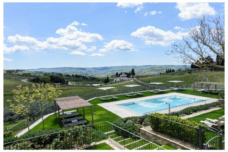 Belle villa avec piscine et spa, en position panoramique au milieu des collines du Chianti, à mi-chemin entre Florence et Sienne.
