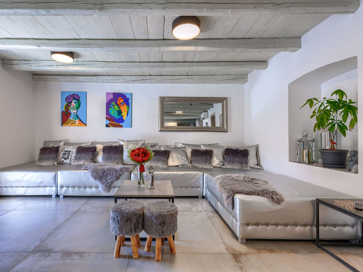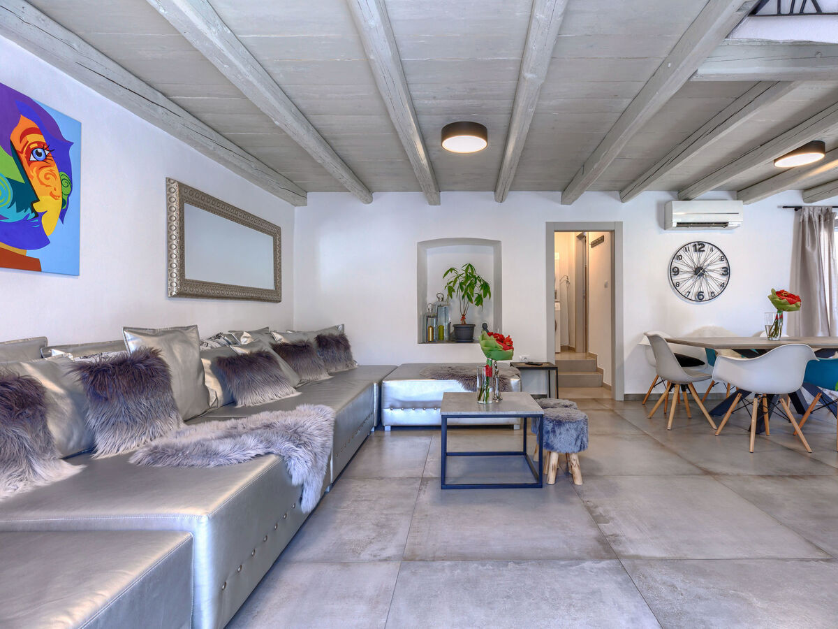 Séjour/salle à manger avec 1 divan-lit double (150 cm, longueur 200 cm), TV (satellite) et air-conditionné.