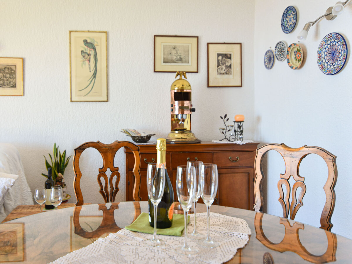 Séjour/salle à manger avec TV (satellite) et air-conditionné.