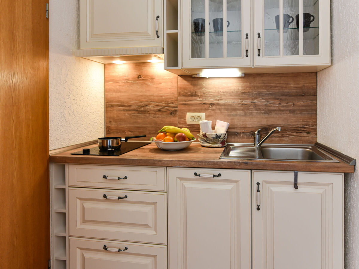 Petite cuisine ouverte (lave-vaisselle, 2 plaques vitrocéramiques).