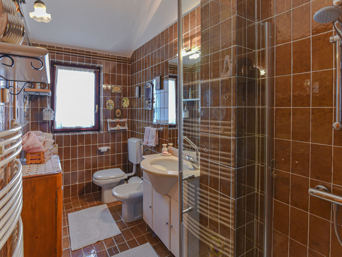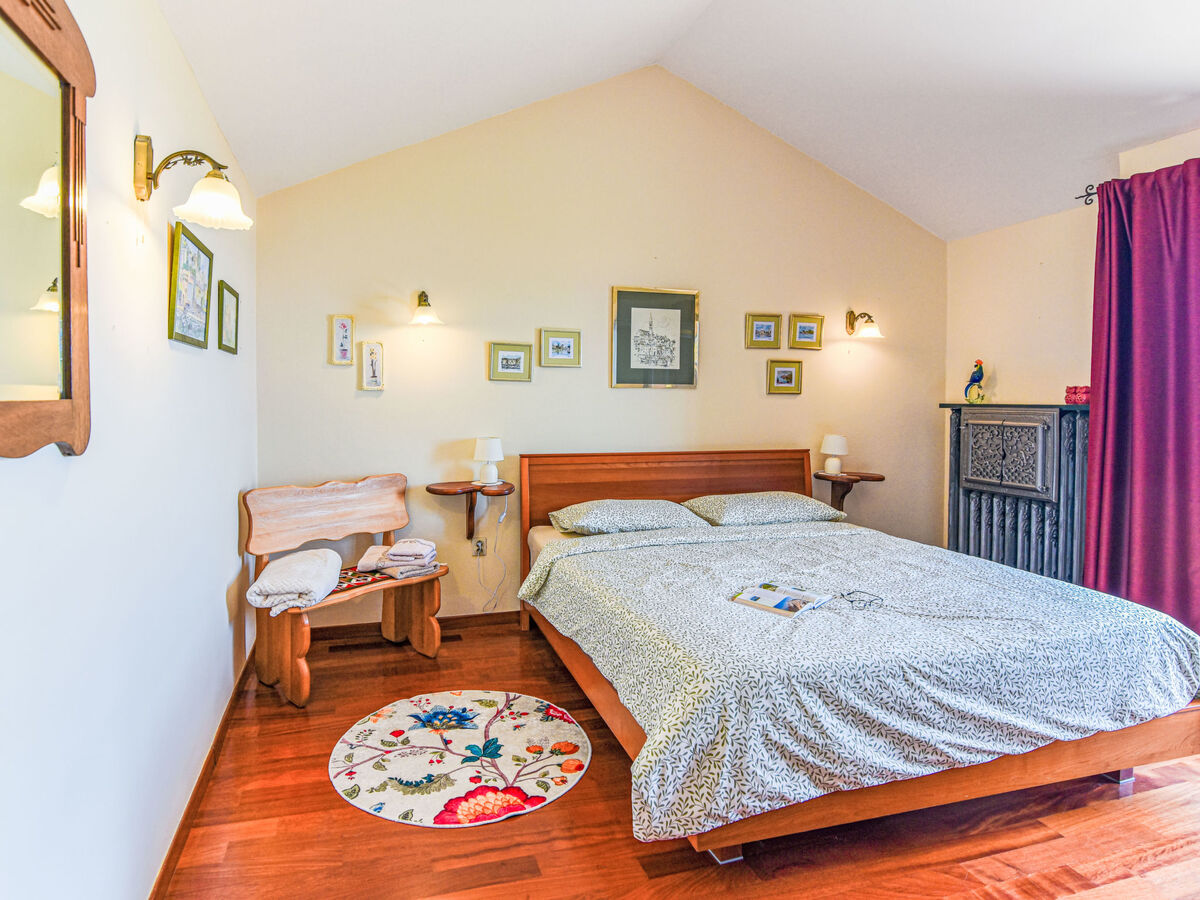 À l'étage inférieur: 1 chambre avec 1 grand-lit (160 cm, longueur 200 cm), douche/WC et air-conditionné.