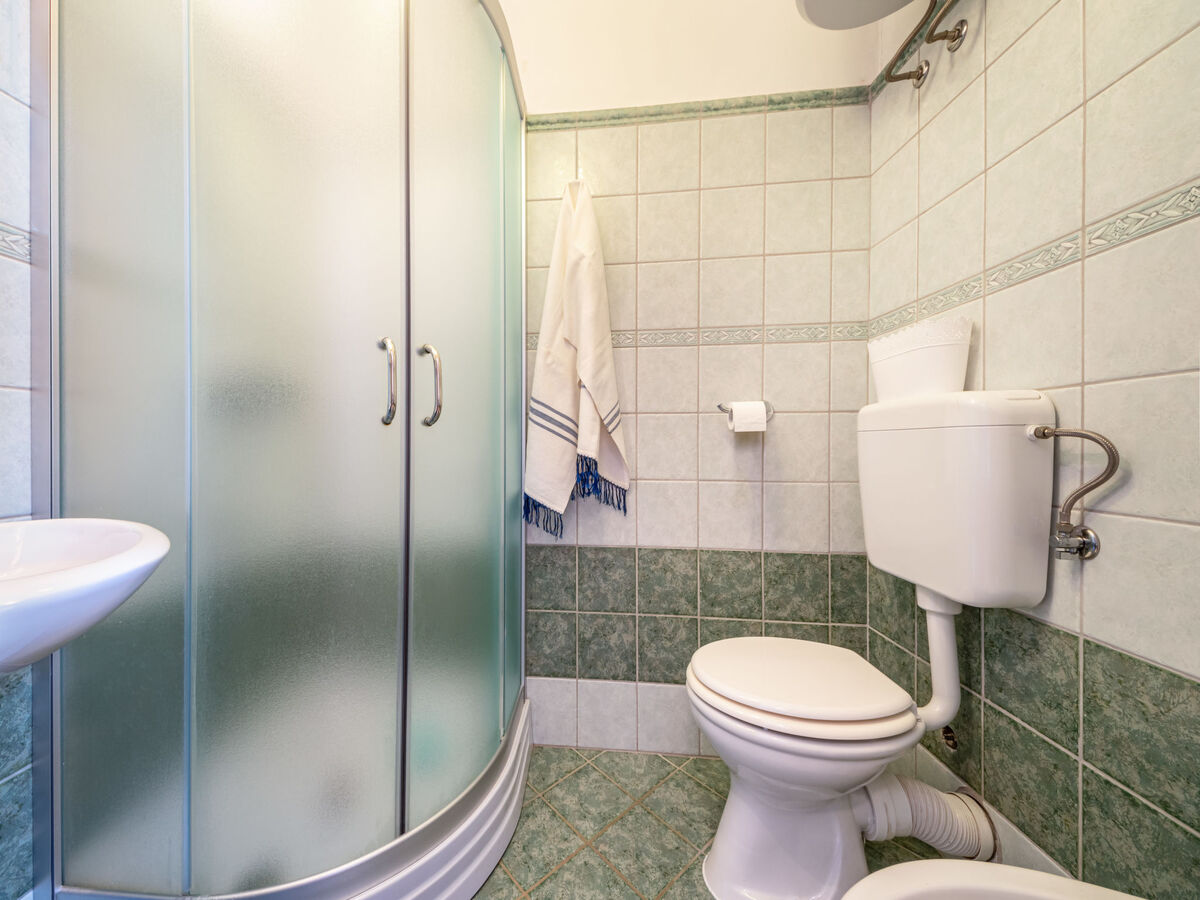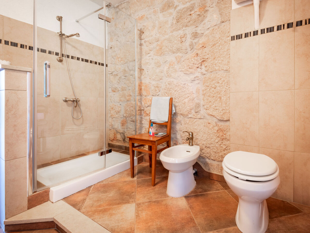 À l'étage supérieur: 1 chambre avec 1 lit (80 cm, longueur 190 cm), 1 lit double (2 x 90 cm, longueur 200 cm), douche/bidet/WC, Télévision numérique et air-conditionné.