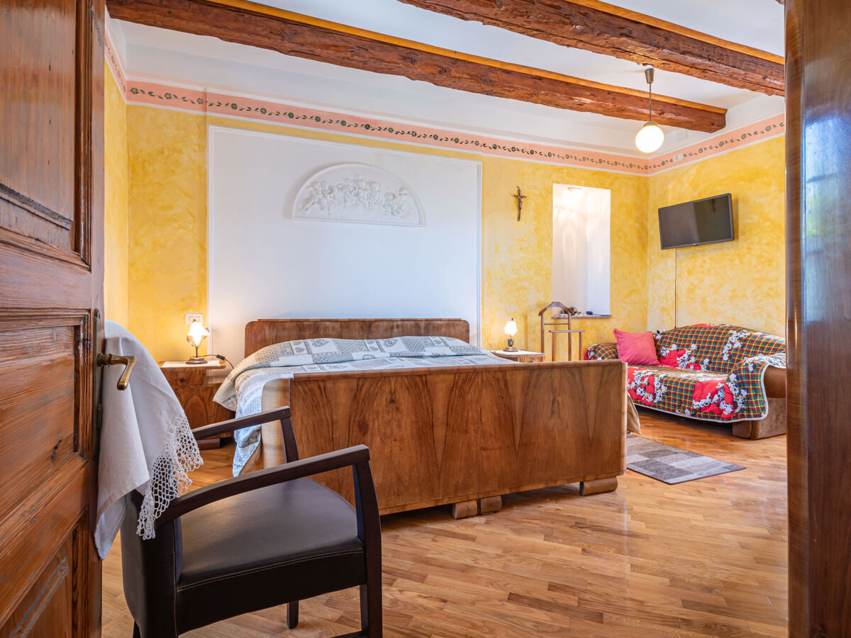 1 chambre avec 1 lit double (2 x 90 cm, longueur 200 cm), douche/WC, Télévision numérique et air-conditionné.