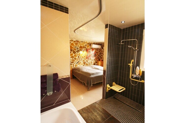 Fantastique, nouvelle villa de luxe en pierre naturelle, accessible aux fauteuils roulants, en bord de mer. Espace piscine communautaire, bain à remous extérieur privé et ascenseur au plafond possible.