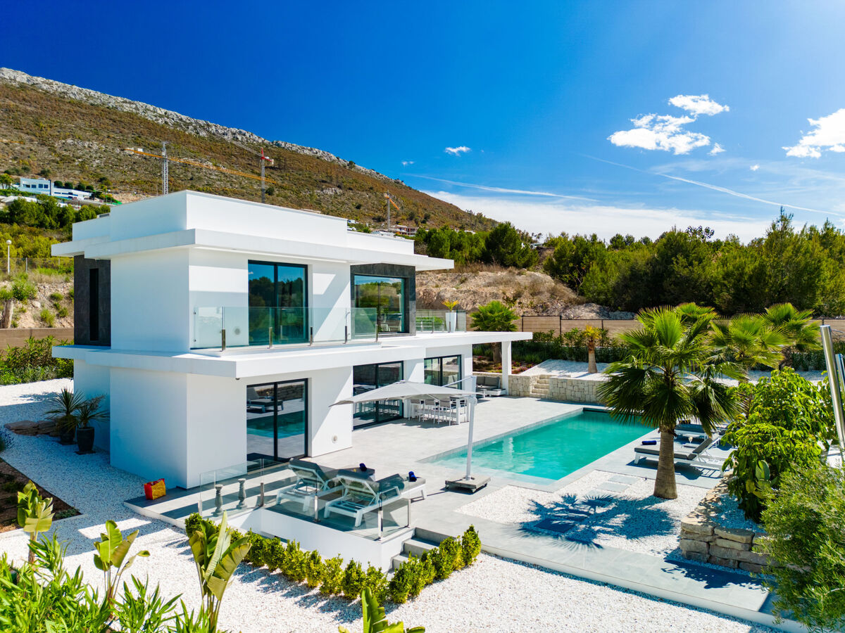 Dans le quartier de Villes del Vent - Monte Olimpo, à 5 km du centre de Jávea - El Arenal, à 8 km du centre de Moraira, situation tranquille, ensoleillée, à 5 km de la mer, à 5 km de la plage.