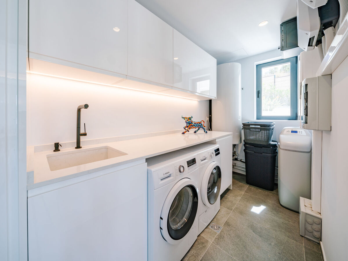 Infrastructures de la Maison: chauffage central, air-conditionné, blanchisserie, lave-linge, sèche-linge.