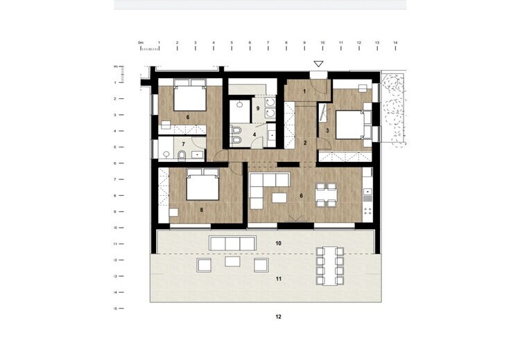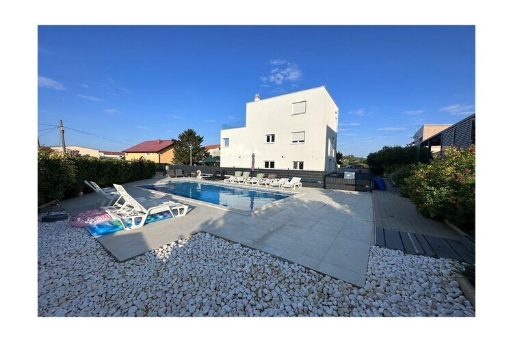 Bel appartement au rez-de-chaussée, 117 m², 3 chambres, 2 salles de bains, piscine 50 m², cuisine entièrement équipée, grande terrasse 54 m², place de parking avec portail