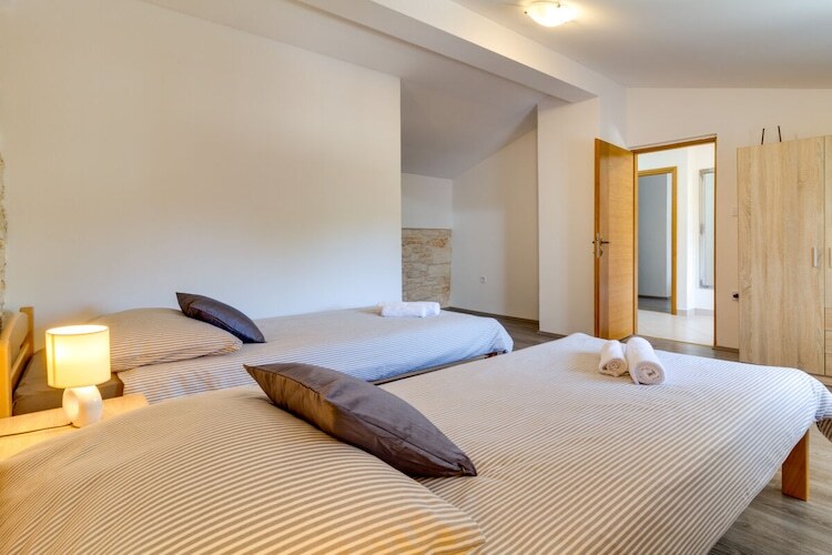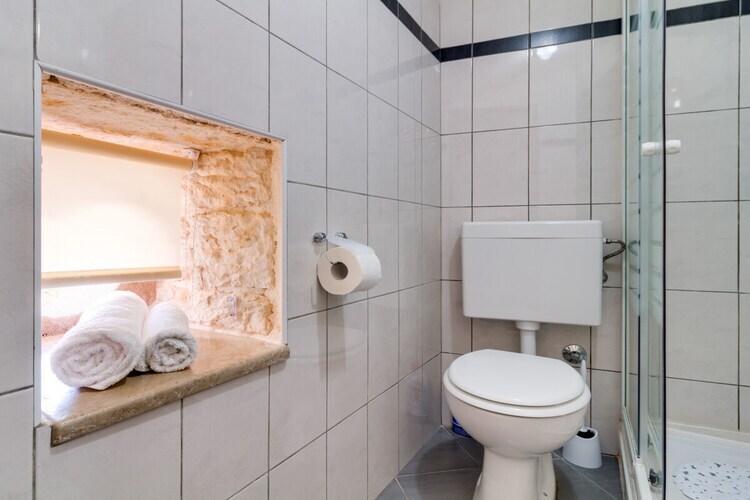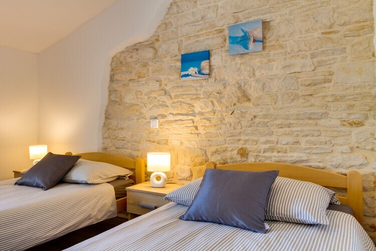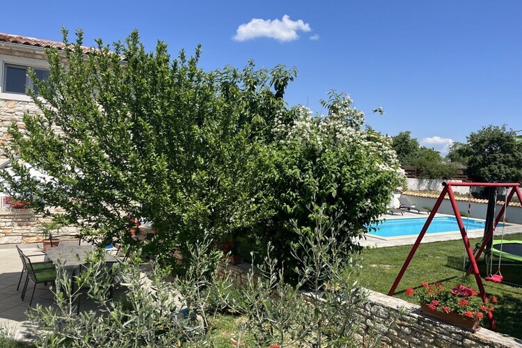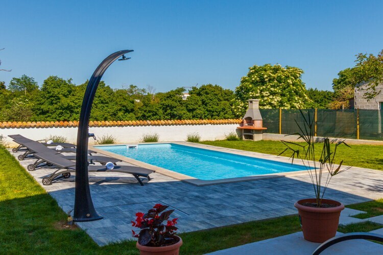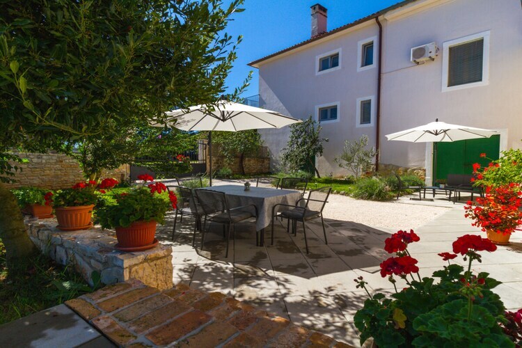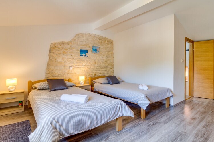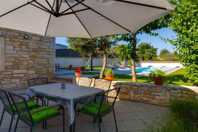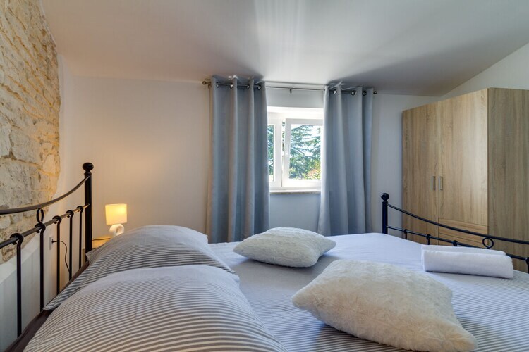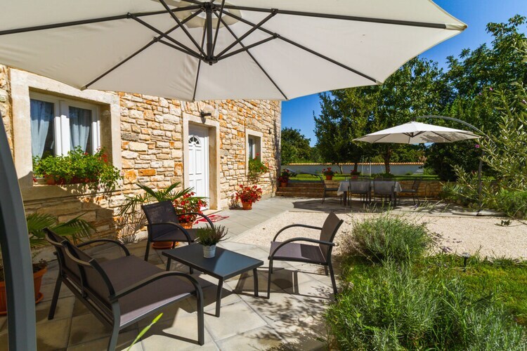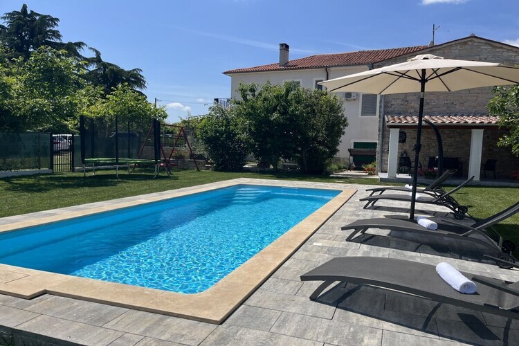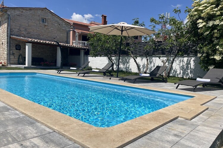 Maison de vacances en pierre Furlani avec piscine privée dans la célèbre ville de Svetvincenat, près de la place principale et du château Grimani Morosini.