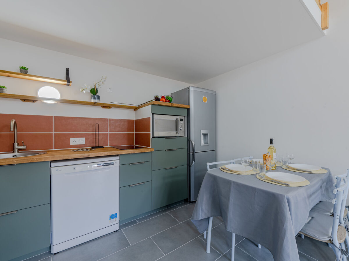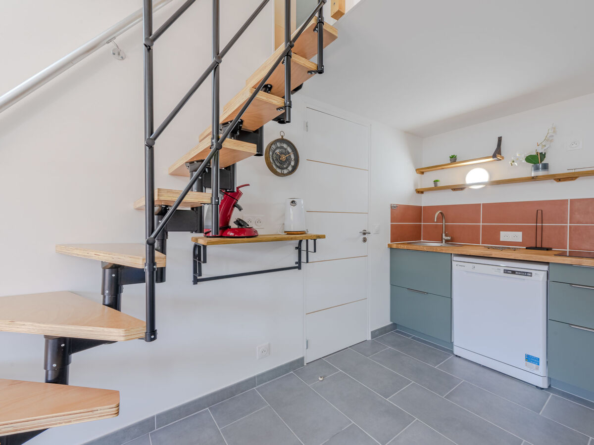Coin cuisine (lave-vaisselle, 2 plaques à induction, grille-pain, bouilloire électrique, micro-ondes, congélateur, cafetière électrique, Capsules pour machine à café (senseo) (NON INCLUSES)).