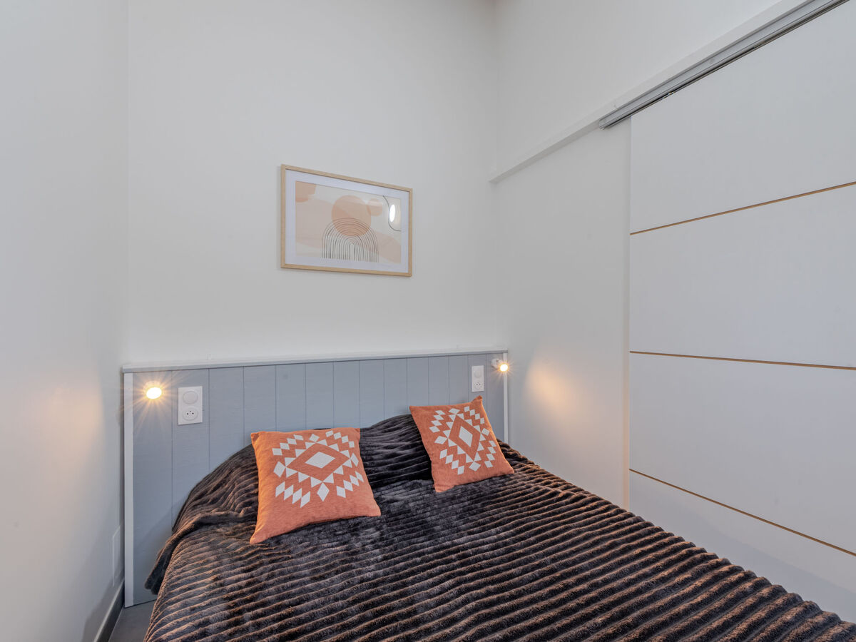 1 chambre avec porte coulissante avec 1 grand-lit (140 cm, longueur 190 cm), TV (écran plat).
