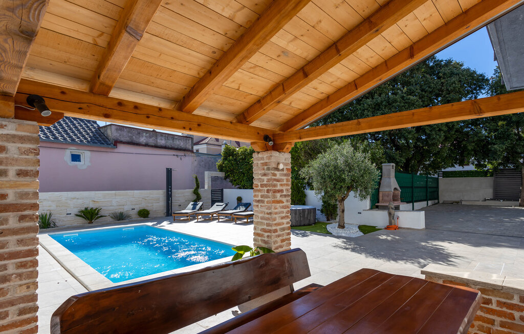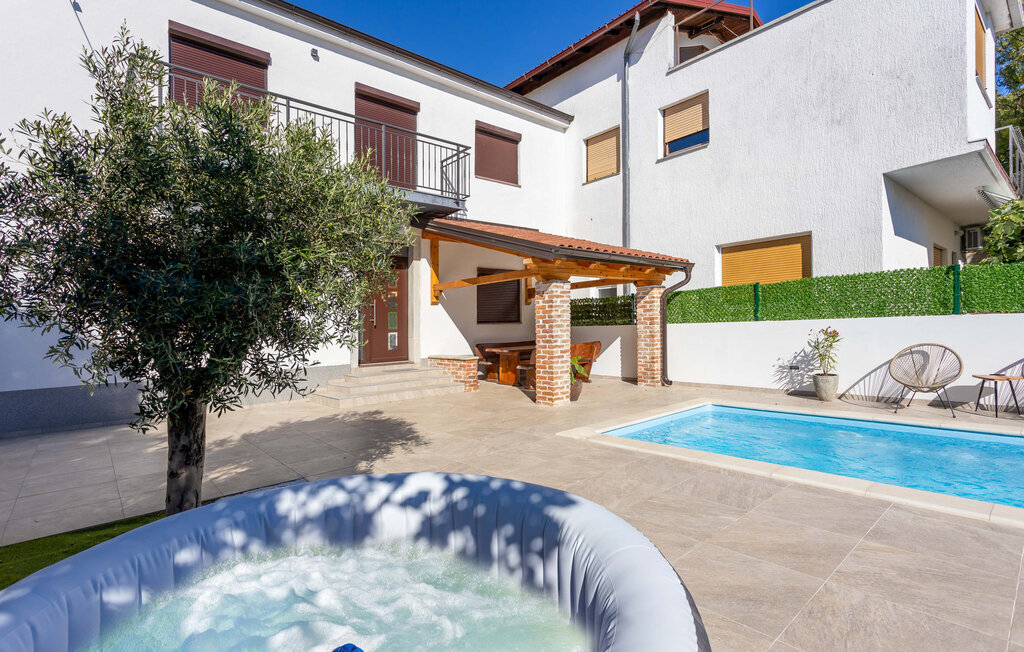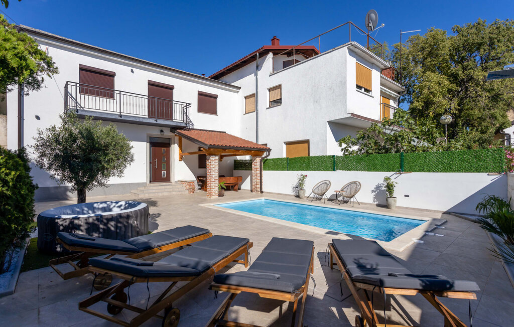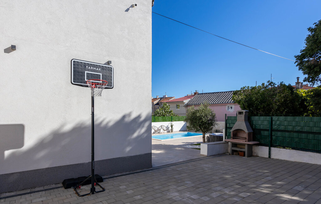 Bienvenue dans votre charmante maison de vacances à Novi Vinodolski. Profitez du magnifique espace extérieur, équipé d'une piscine rafraîchissante et de chaises longues confortables. Plongez et laissez le soleil danser sur votre peau. Profitez de l'agréable terrasse couverte pour prendre vos repas ensemble. L'espace barbecue vous invite à préparer de délicieux repas en plein air et à passer la journée en toute convivialité. Passez vos soirées sous le ciel clair et étoilé et profitez de l'atmosphère paisible. Détendez-vous également dans le jacuzzi et laissez le stress quotidien derrière vous. Le terrain de basket-ball offre un divertissement supplémentaire pour toute la famille.