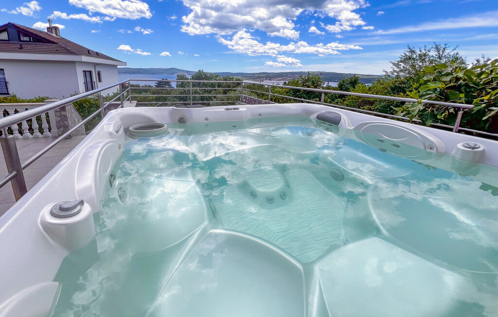 Bien-être à l'extérieur : Location de vacances disposant de chaises-longues et d'un ou plusieurs équipements tels que piscine extérieure, jacuzzi extérieur, lit à baldaquin de jardin etc...