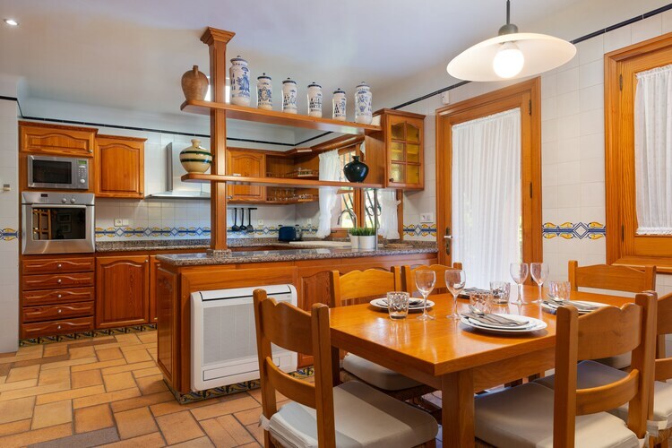 Salle de séjour, salle à manger, cuisine(plaque de cuisson, cafetière/percolateur), chambre(2x lit simple), chambre(lit double), chambre(lit double), chambre(lit double), salle de bains, salle de bains, salle de bains, four, micro ondes, lave-vaisselle , combinaison réfrigérateur/congélateur, baignoire, douche, douche, lavabo, lavabo, lavabo, WC, WC, WC, bidet, bidet, bidet, climatisation, climatisation, climatisation, climatisation, jardin, mobilier de jardin, 5x transats, barbecue, 2x parasol, piscine, lit d'enfant, chaise haute
