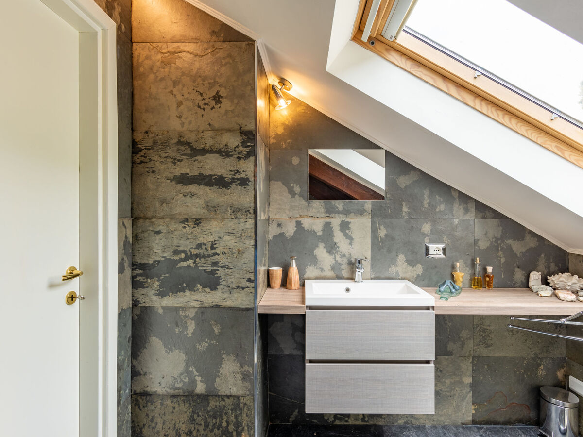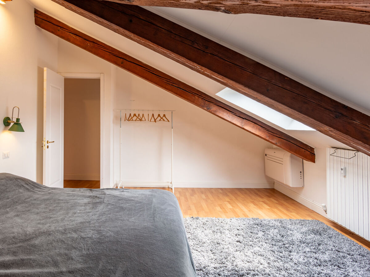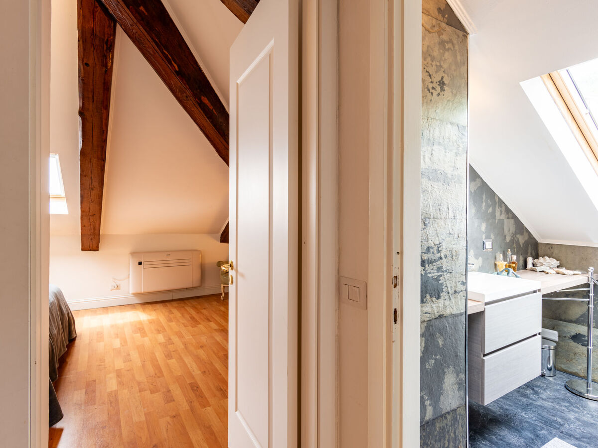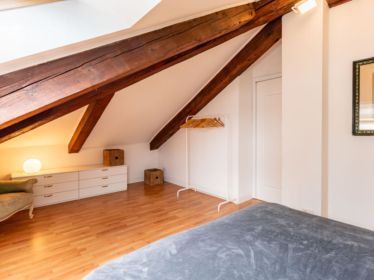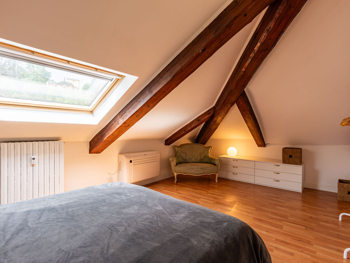 Partiellement mansardé, aménagement moderne et de bon goût: grand séjour/salle à manger avec TV.