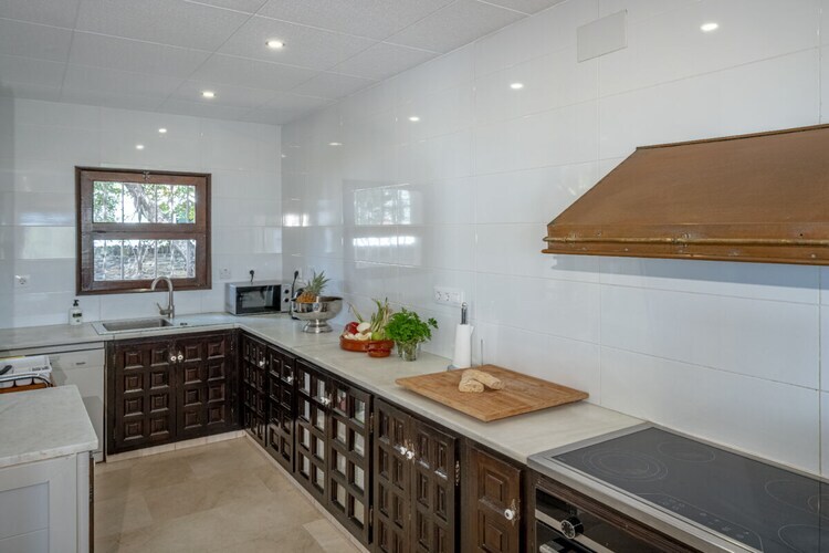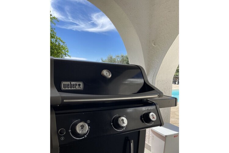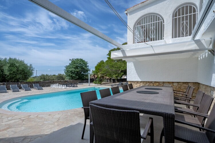 Fantastique propriété avec une grande piscine - idéale pour 1 grande famille ou 2 familles Piscine privée, tennis de table, fléchettes, etc. garantissent du plaisir à toute la famille Zone de détente couverte avec vue sur la mer Canapés extérieurs Barbecue Coin repas couvert au bord de la piscine