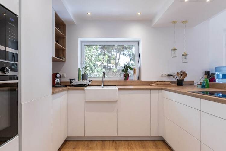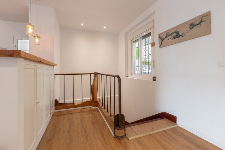 Distribuida en dos plantas, en la planta baja les recibe un luminoso salón comedor con Smart TV y aire acondicionado. El espacio se abre a una moderna cocina de inducción completamente equipada con todos los utensilios necesarios para que cocinen con comodidad y puedan preparar deliciosas comidas. Tienen a su disposición una lavadora, secadora, plancha y tabla de planchar. En la planta -1 se encuentran dos acogedores dormitorios. Uno de ellos tiene una cama doble y el otro una litera con dos camas individuales y una cama doble independiente. Un baño con bañera completa su estancia. Si viajan con su bebé podemos proporcionales una cuna y una trona.