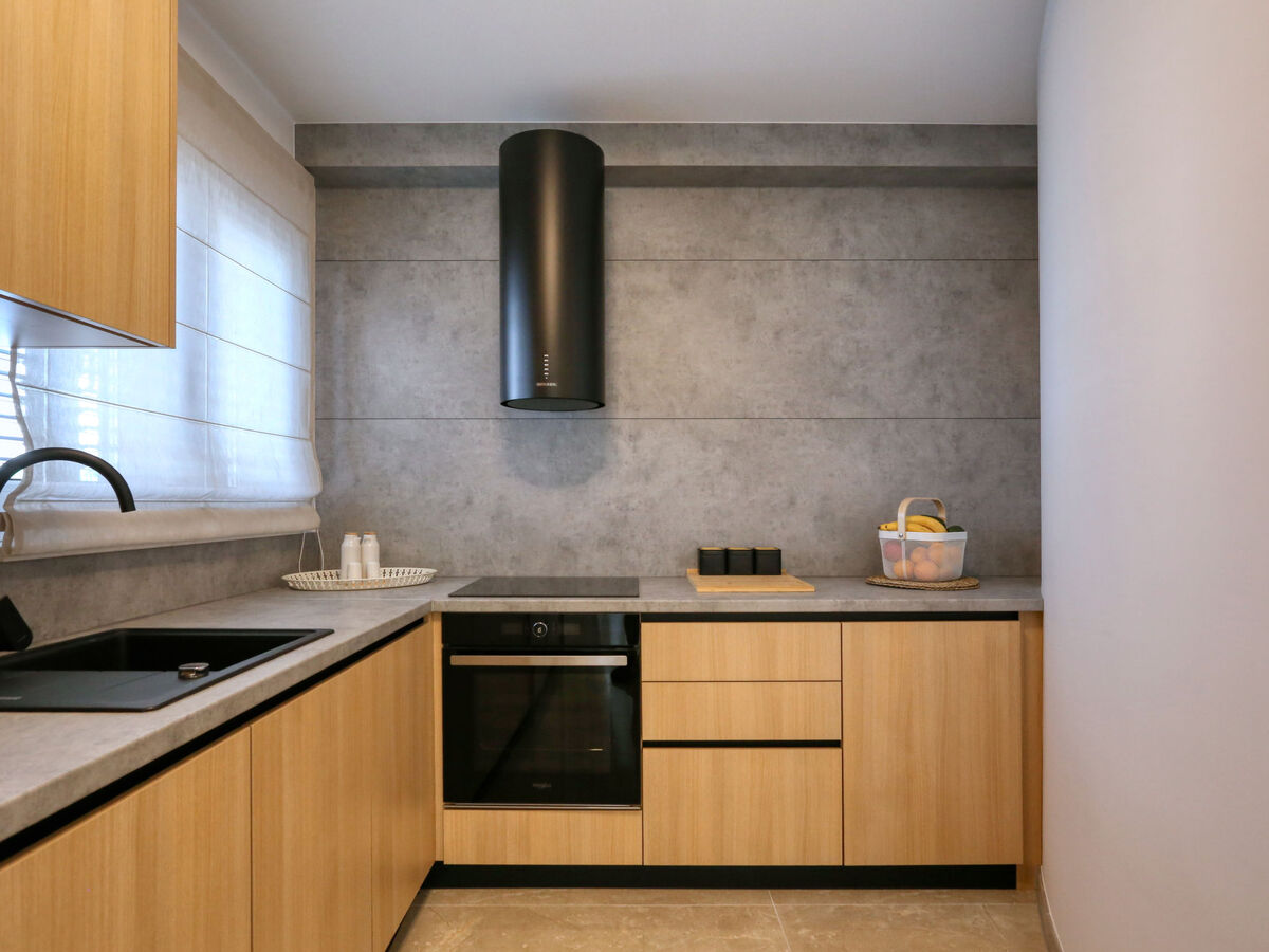 Cuisine ouverte (four, lave-vaisselle, 4 plaques vitrocéramiques, grille-pain, bouilloire électrique, congélateur, cafetière électrique).