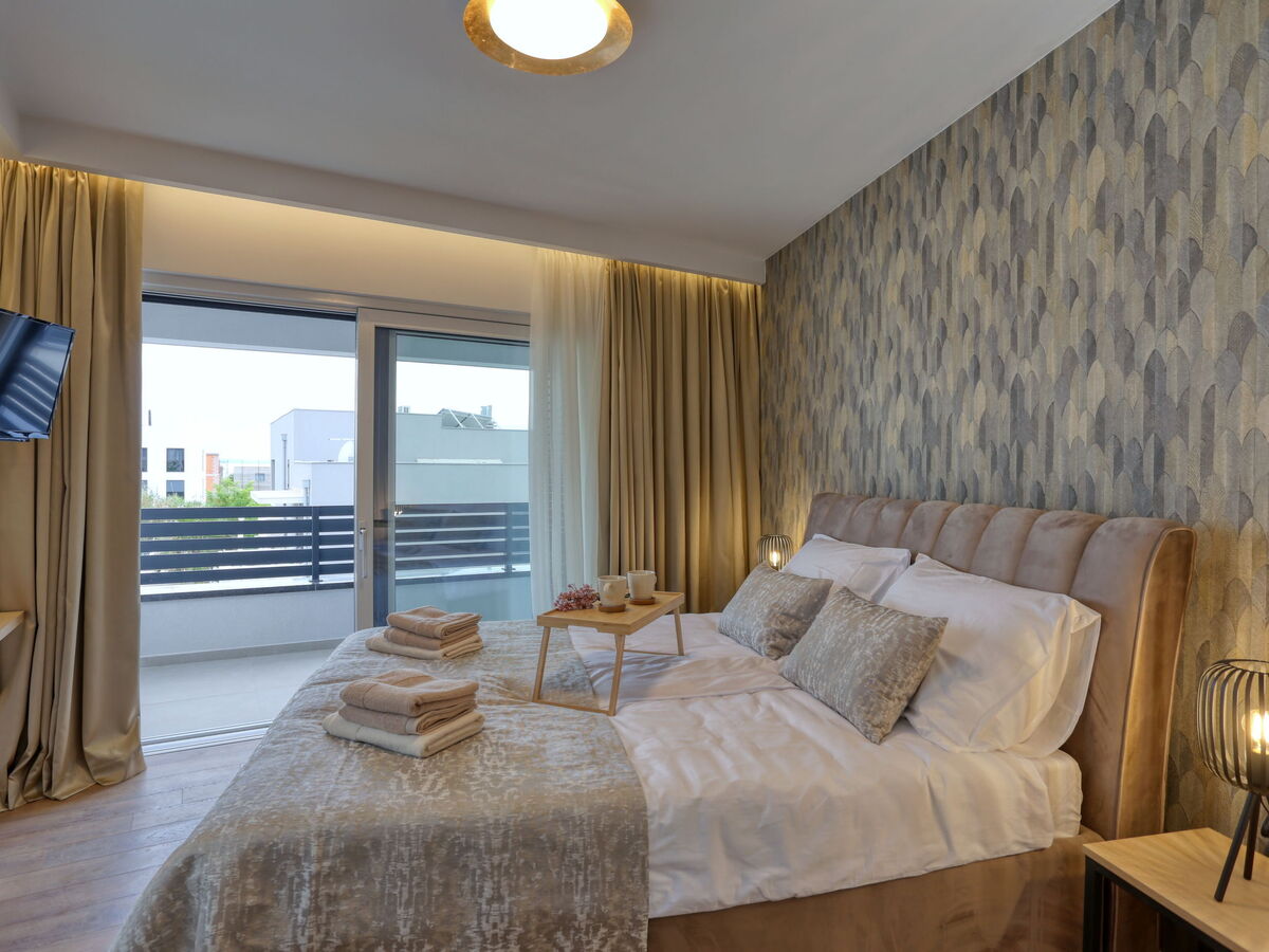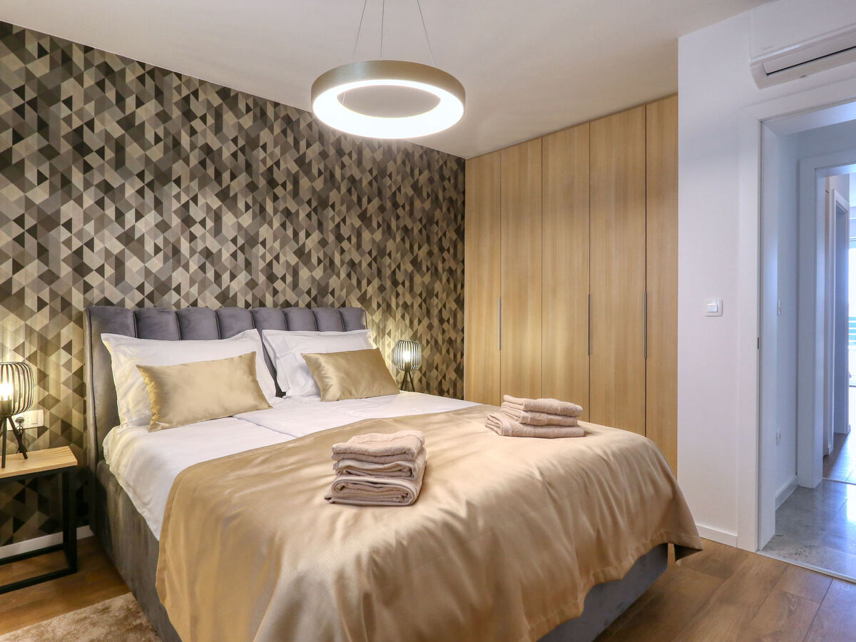 1 chambre avec 1 grand-lit (160 cm, longueur 200 cm), douche/WC et TV (écran plat), air-conditionné.