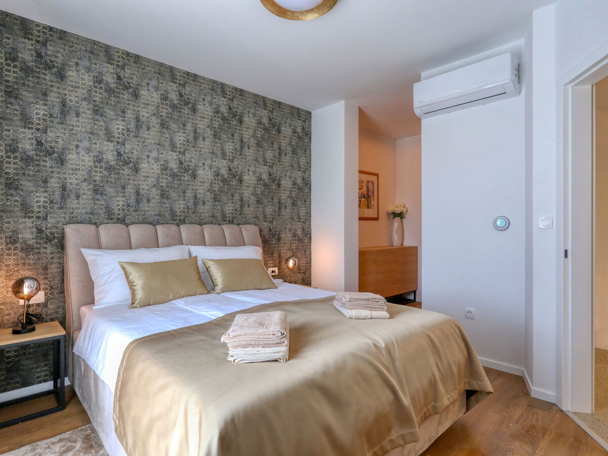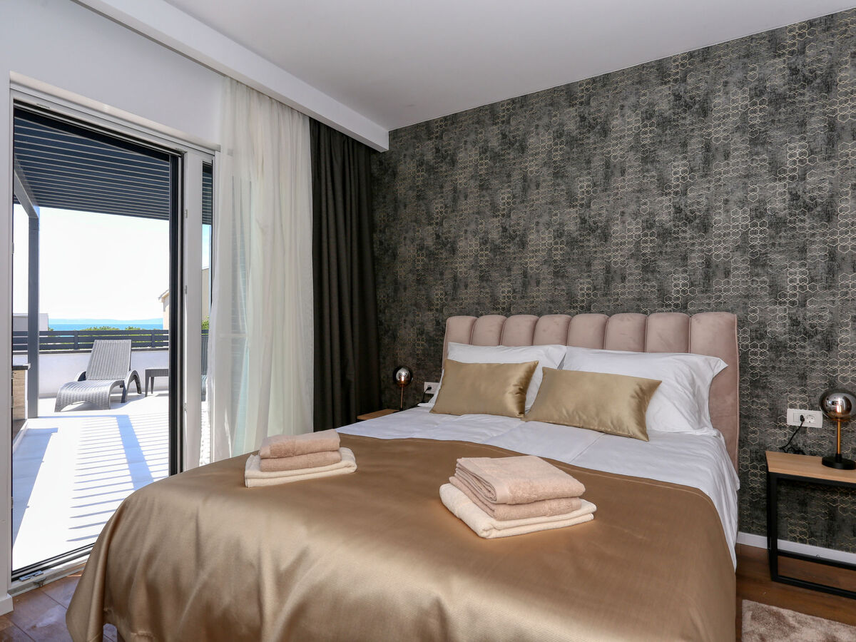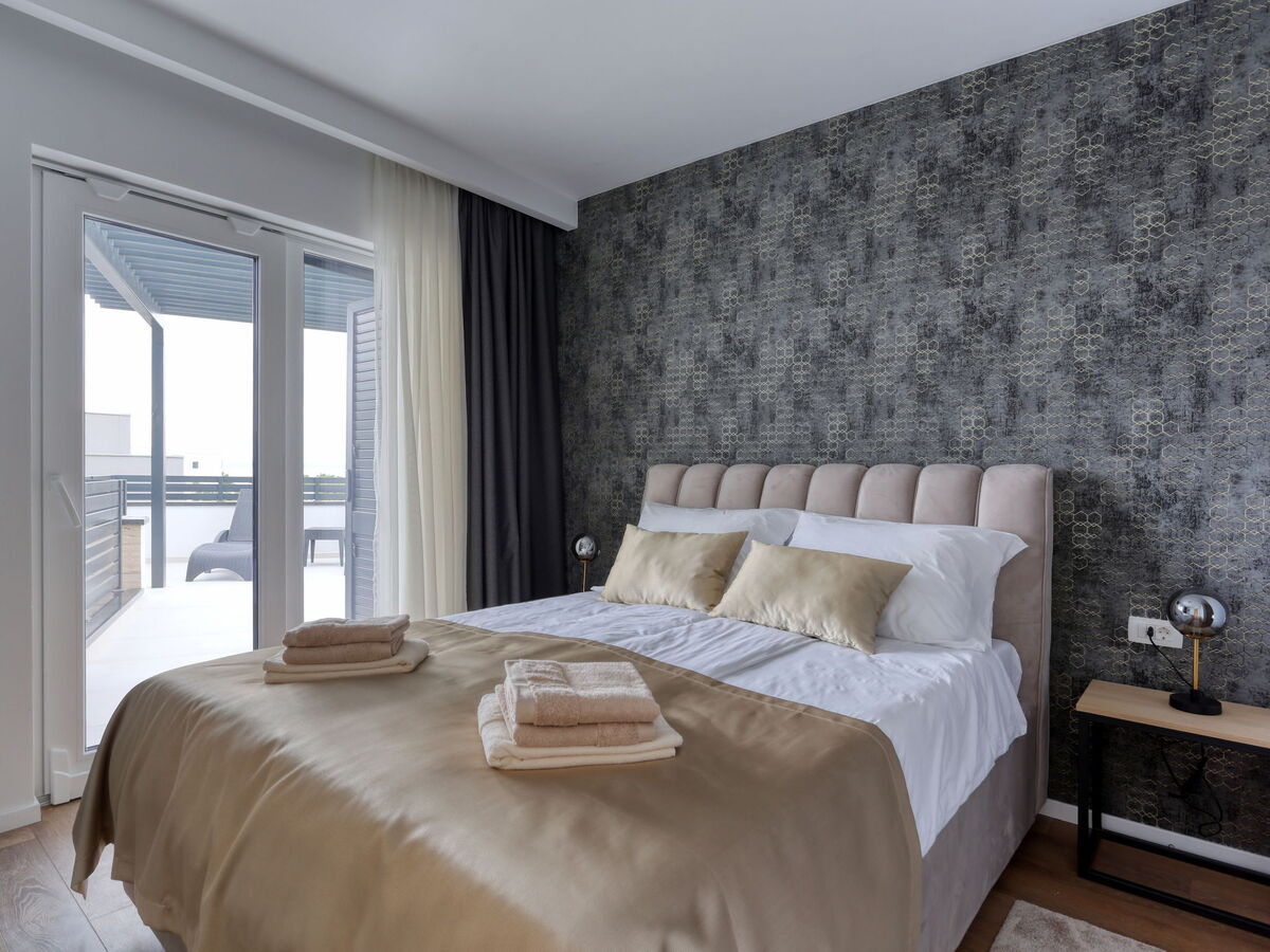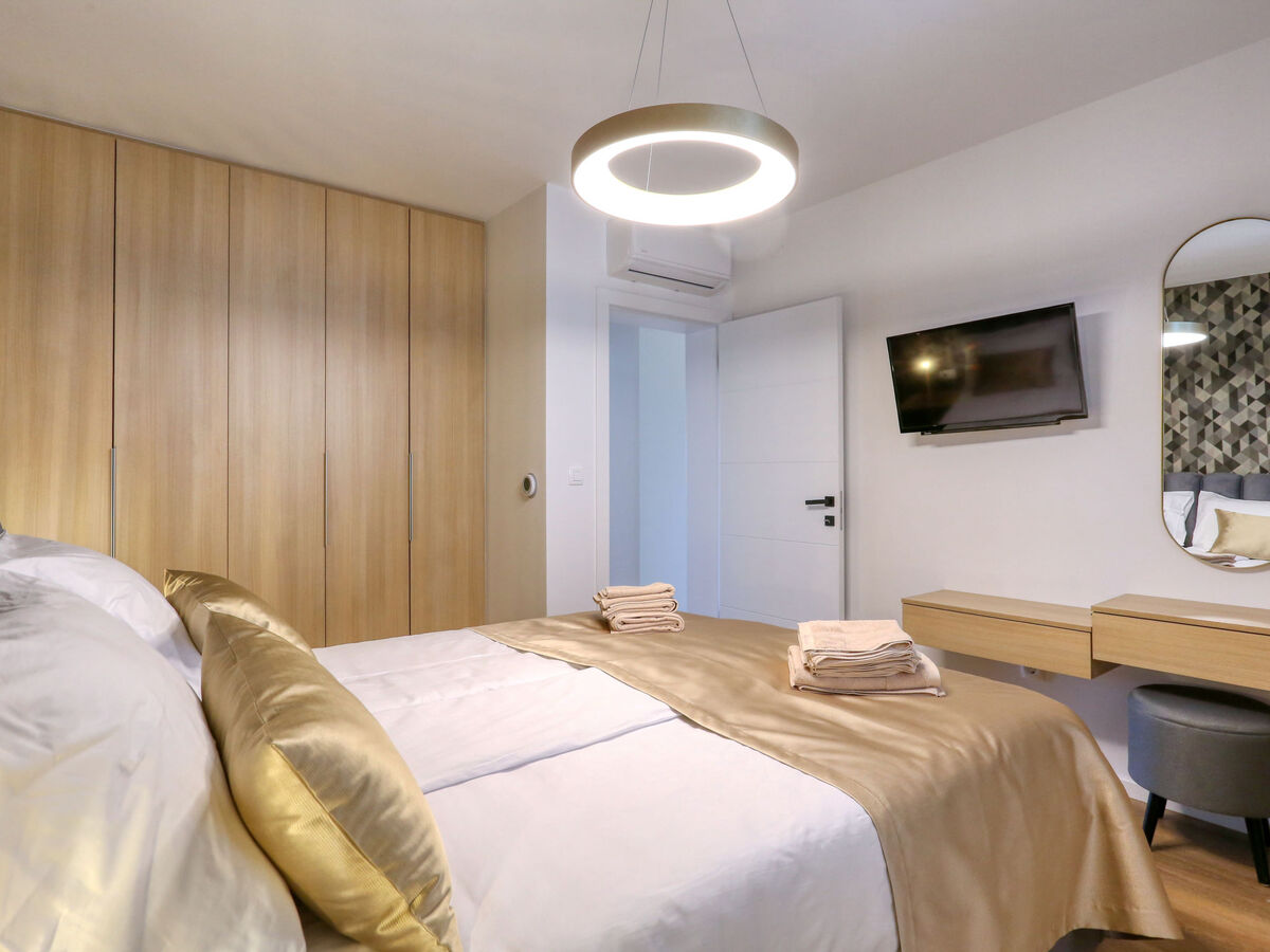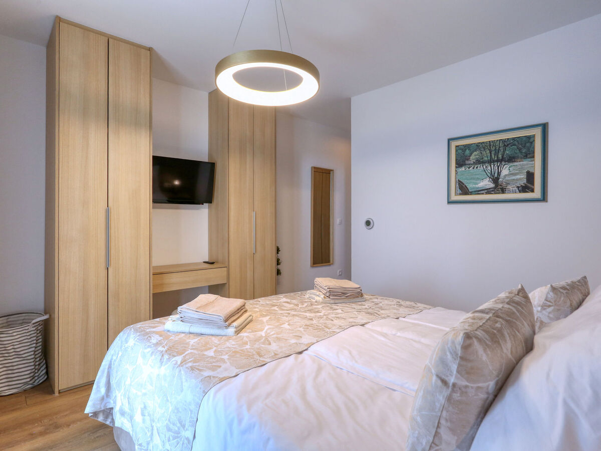 À l'étage supérieur: 1 chambre avec 1 grand-lit (160 cm, longueur 200 cm), TV (écran plat), air-conditionné.
