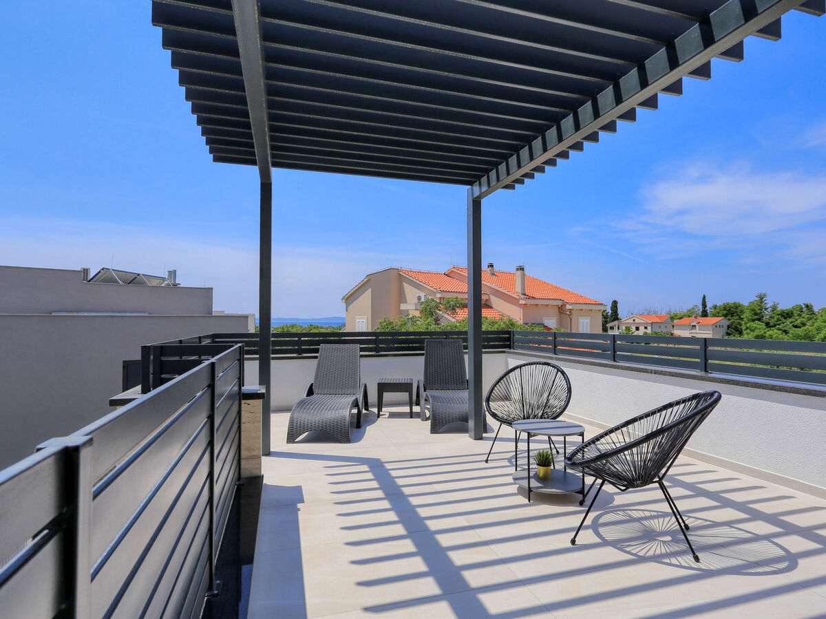 Balcon 4 m2, balcon 6 m2, terrasse 27 m2, terrasse 20 m2, couverte.