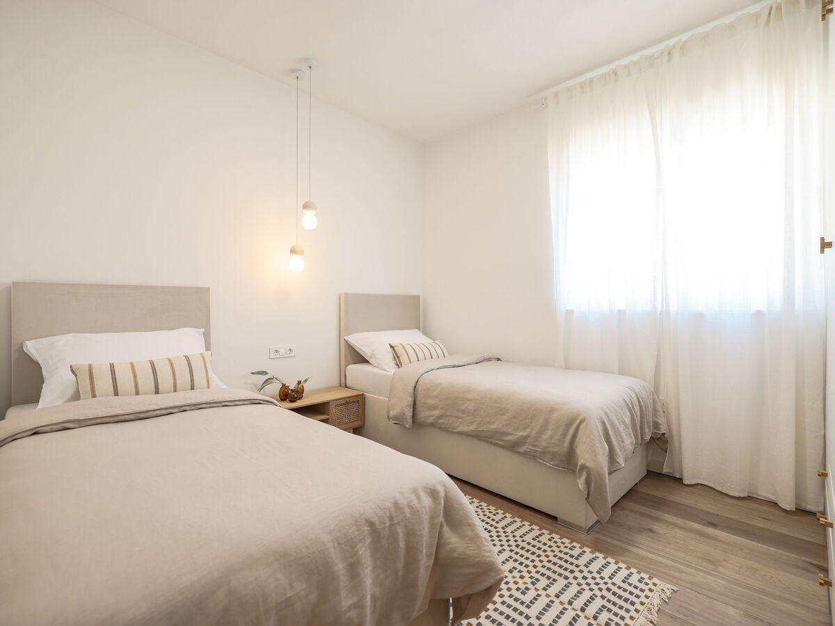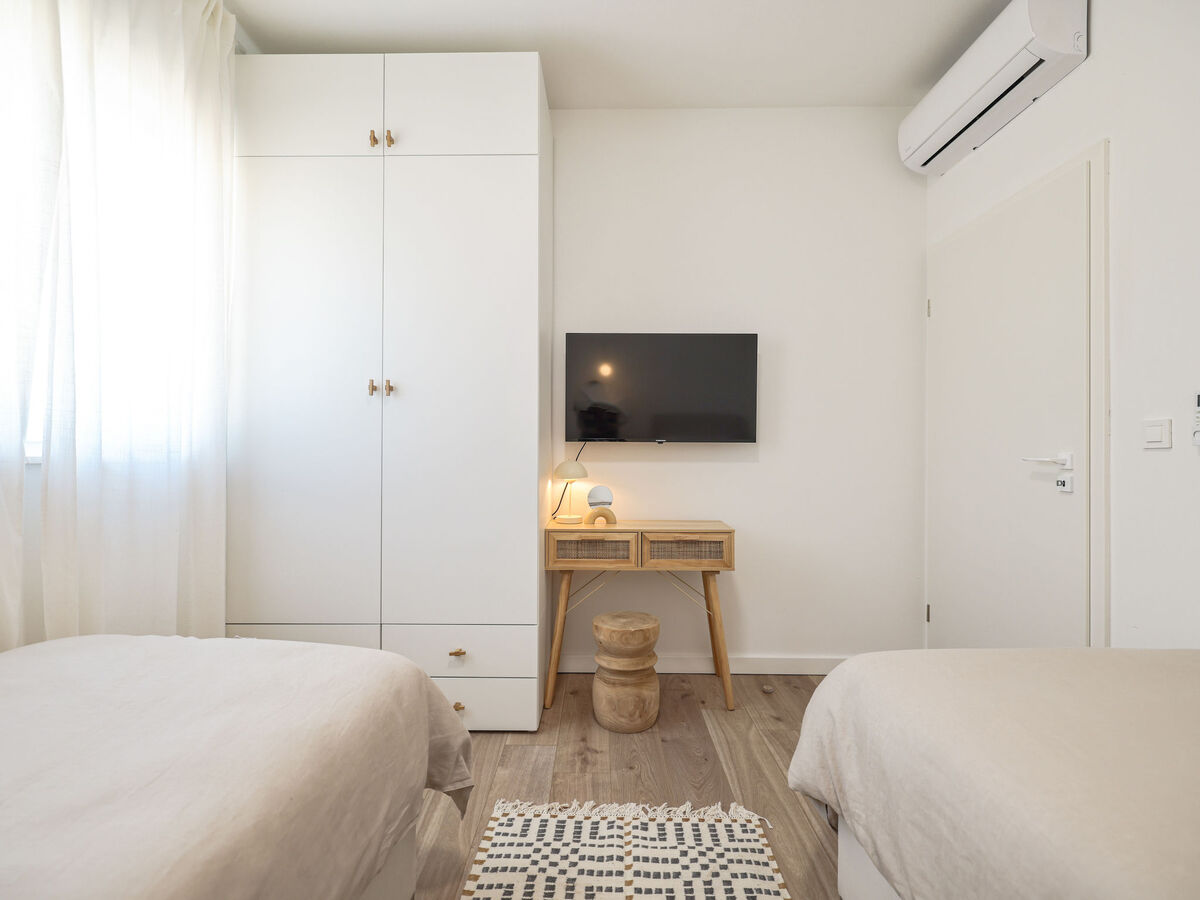 1 chambre avec 2 lits (90 cm, longueur 200 cm), air-conditionné.