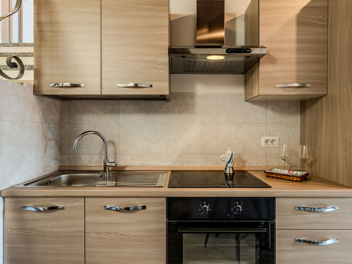 Cuisine ouverte (four, lave-vaisselle, 4 plaques à induction, grille-pain, bouilloire électrique, congélateur, cafetière électrique).