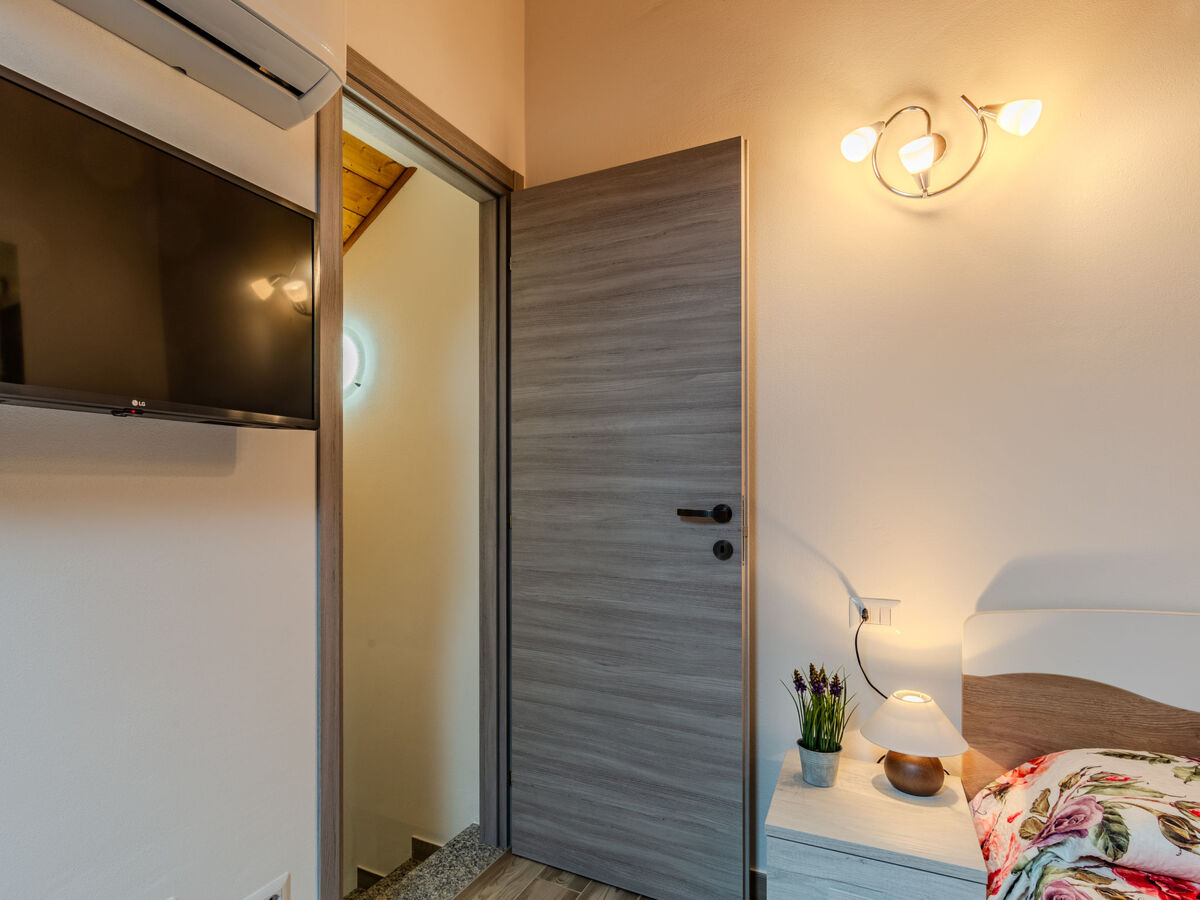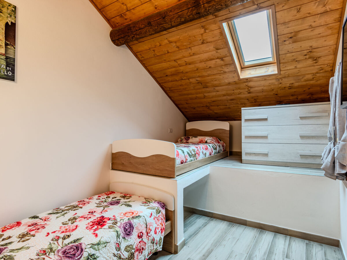 À l'étage supérieur: 1 chambre, mansardée avec 2 lits et TV (écran plat), air-conditionné.