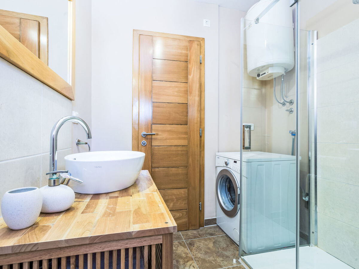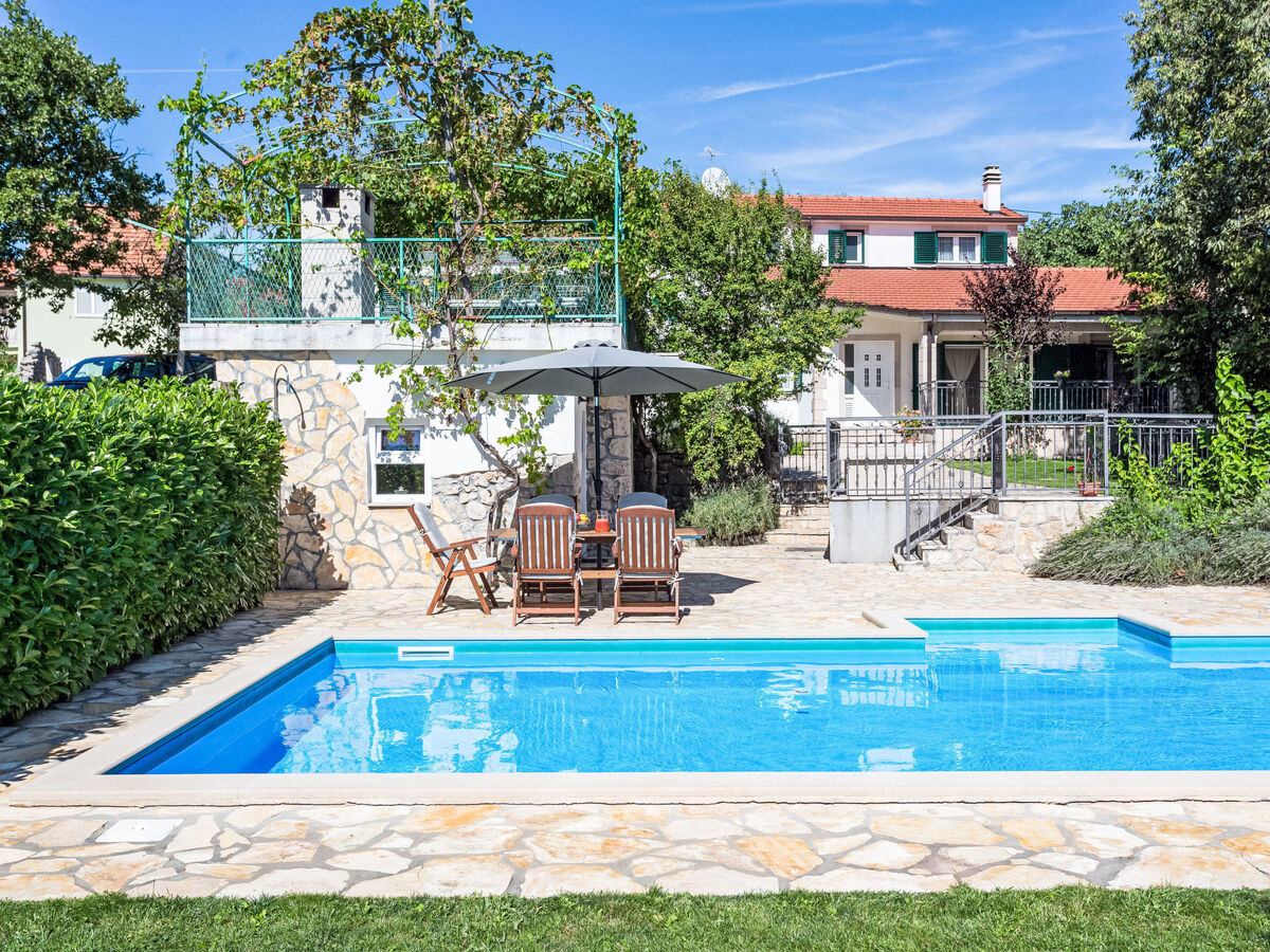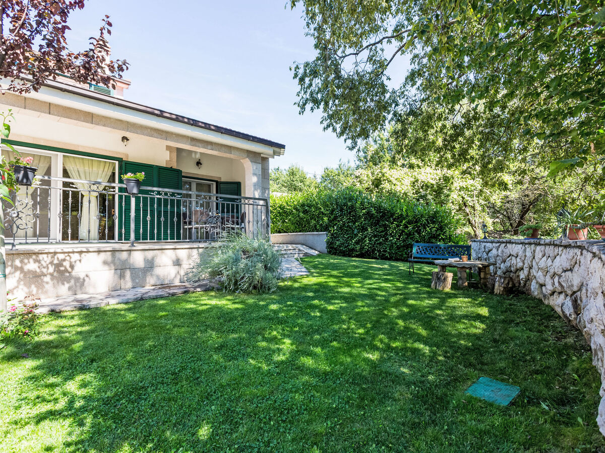 A usage privé: terrain 700 m2 (clôturé) avec pelouse 200 m2, piscine rectangulaire (8 x 4 m, profondeur 140 cm, disponibilité saisonnière: 01.Mai.