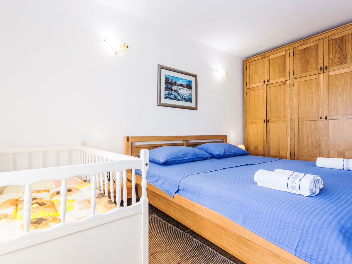 1 chambre avec 1 grand-lit (160 cm, longueur 200 cm).