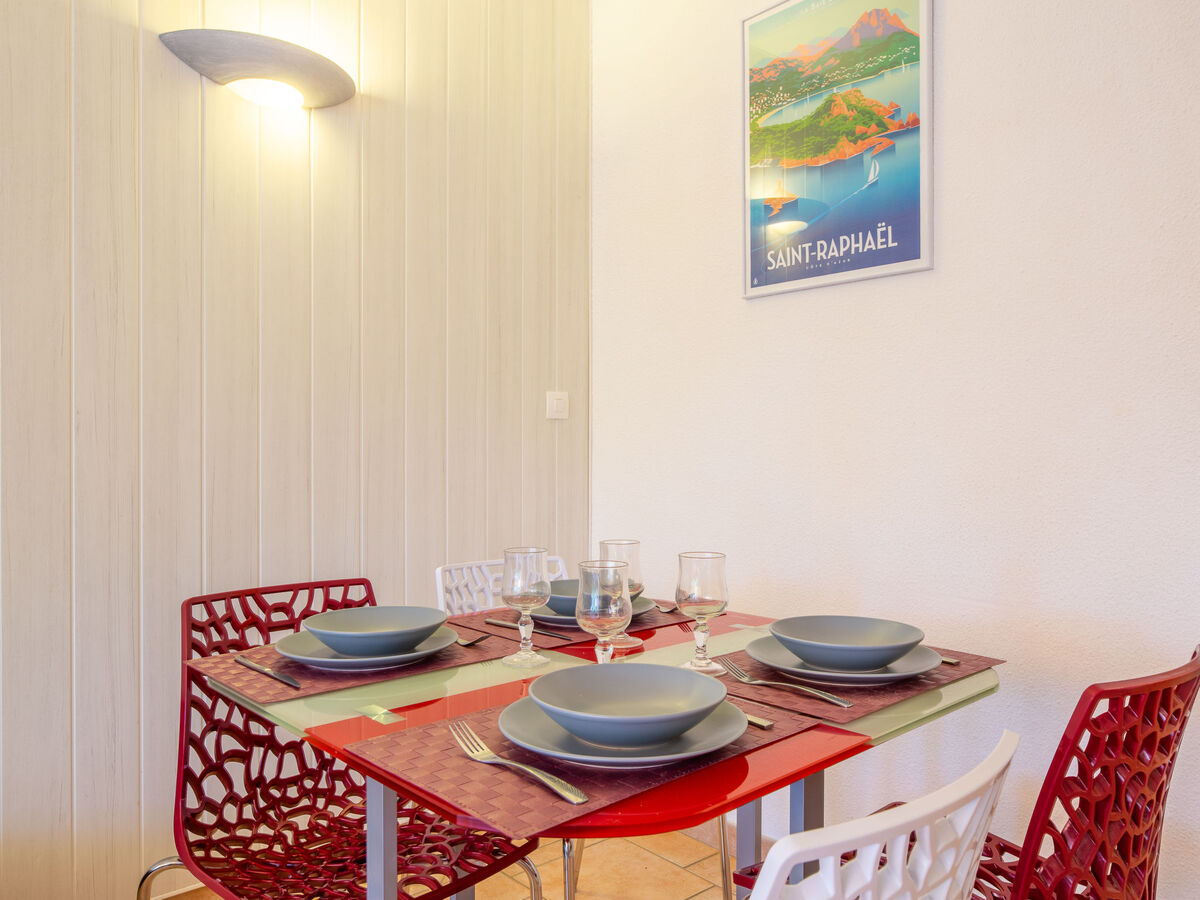 Boulouris, dans la localité, à 3 km du centre de Saint Raphael, dans un quartier résidentiel, à, de la mer, à 300 m de la plage, dans la verdure.
