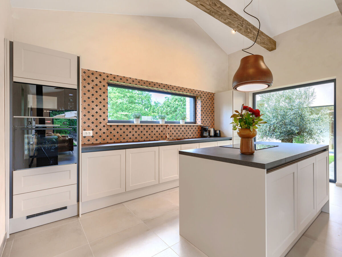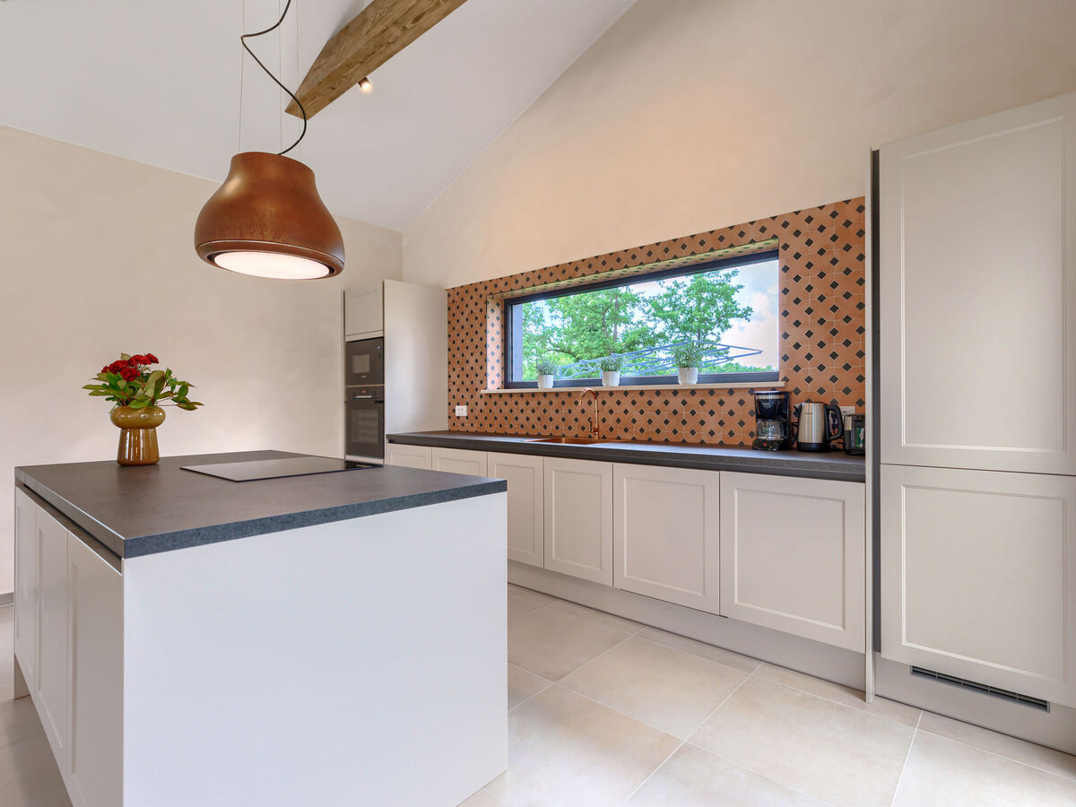 Cuisine ouverte (four, lave-vaisselle, 4 plaques à induction, grille-pain, bouilloire électrique, congélateur, cafetière électrique).