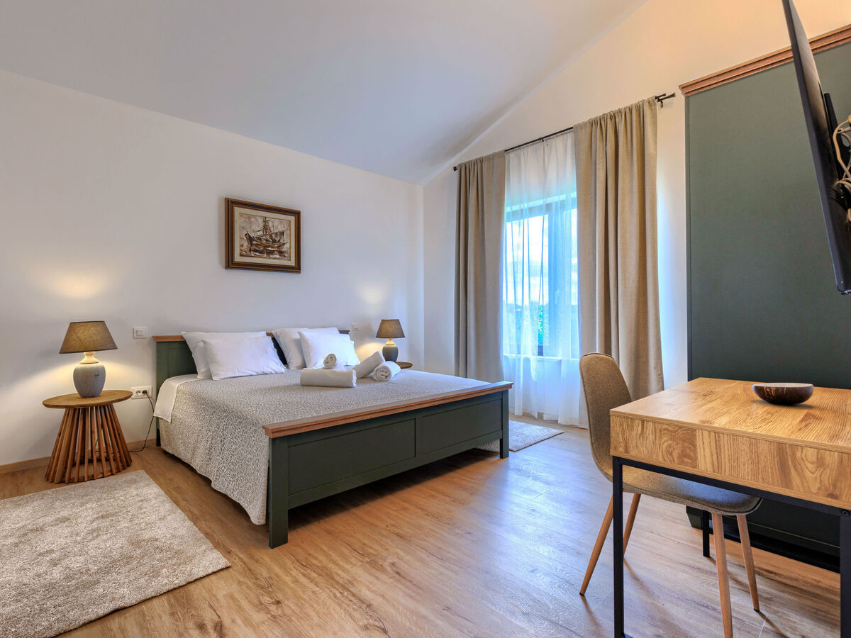 1 chambre avec 2 lits (90 cm, longueur 200 cm), douche/WC, TV (satellite) et air-conditionné.