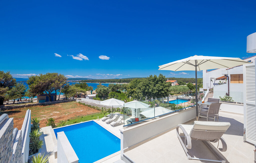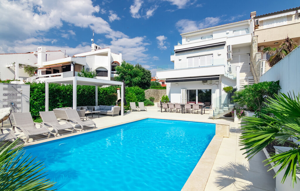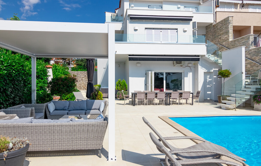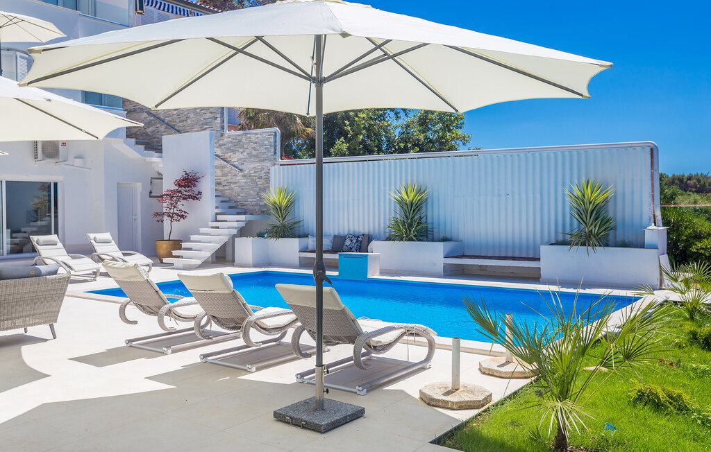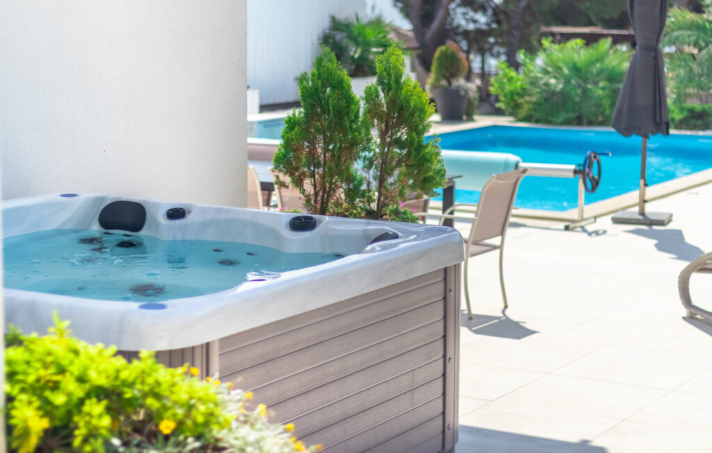 Bien-être à l'extérieur : Location de vacances disposant de chaises-longues et d'un ou plusieurs équipements tels que piscine extérieure, jacuzzi extérieur, lit à baldaquin de jardin etc...