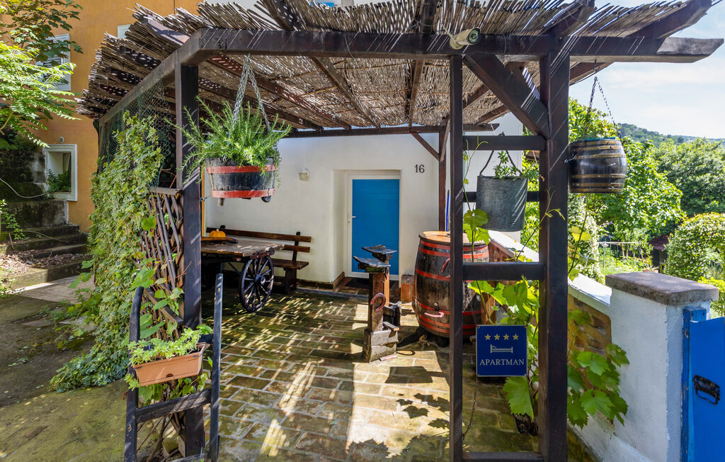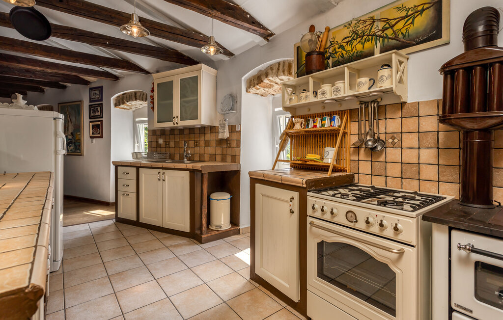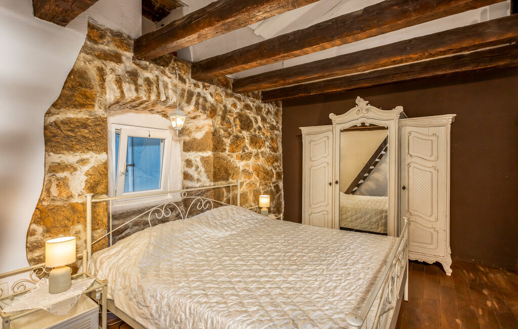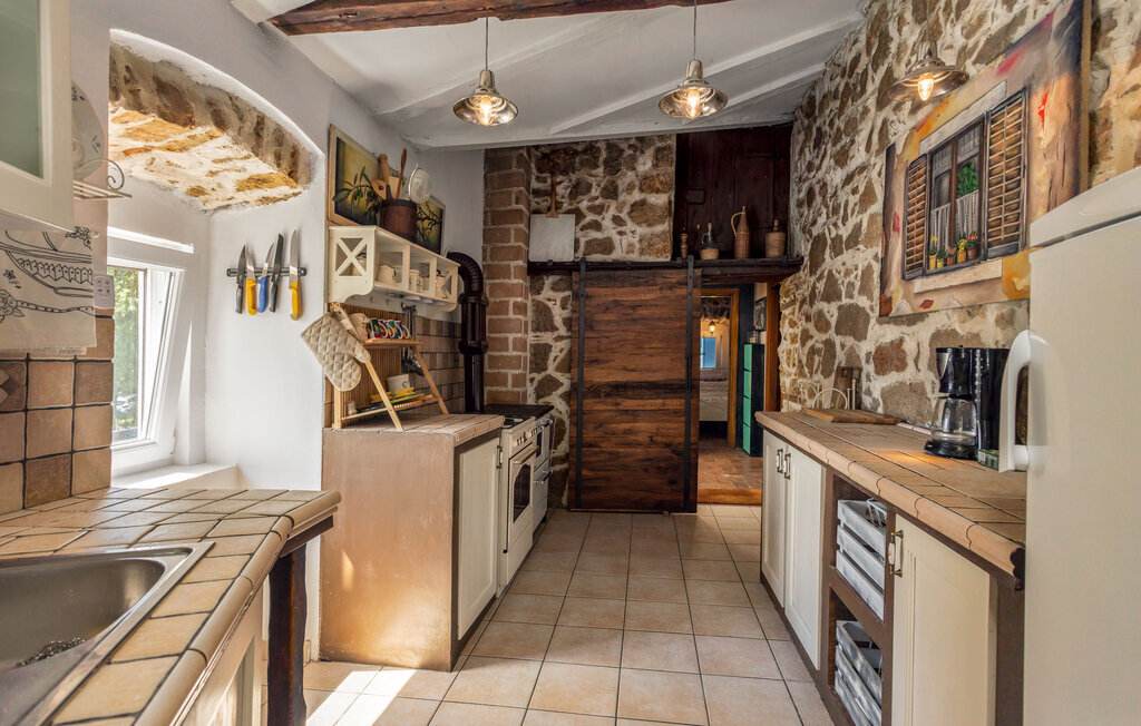 La chambre à coucher du rez-de-chaussée donne directement sur la terrasse ensoleillée, idéale pour se détendre. Le terrain entièrement clôturé vous offre de l'intimité pendant que vous profitez de la nature. La proximité du centre-ville de Rijeka, facilement accessible à pied, apporte un confort supplémentaire.