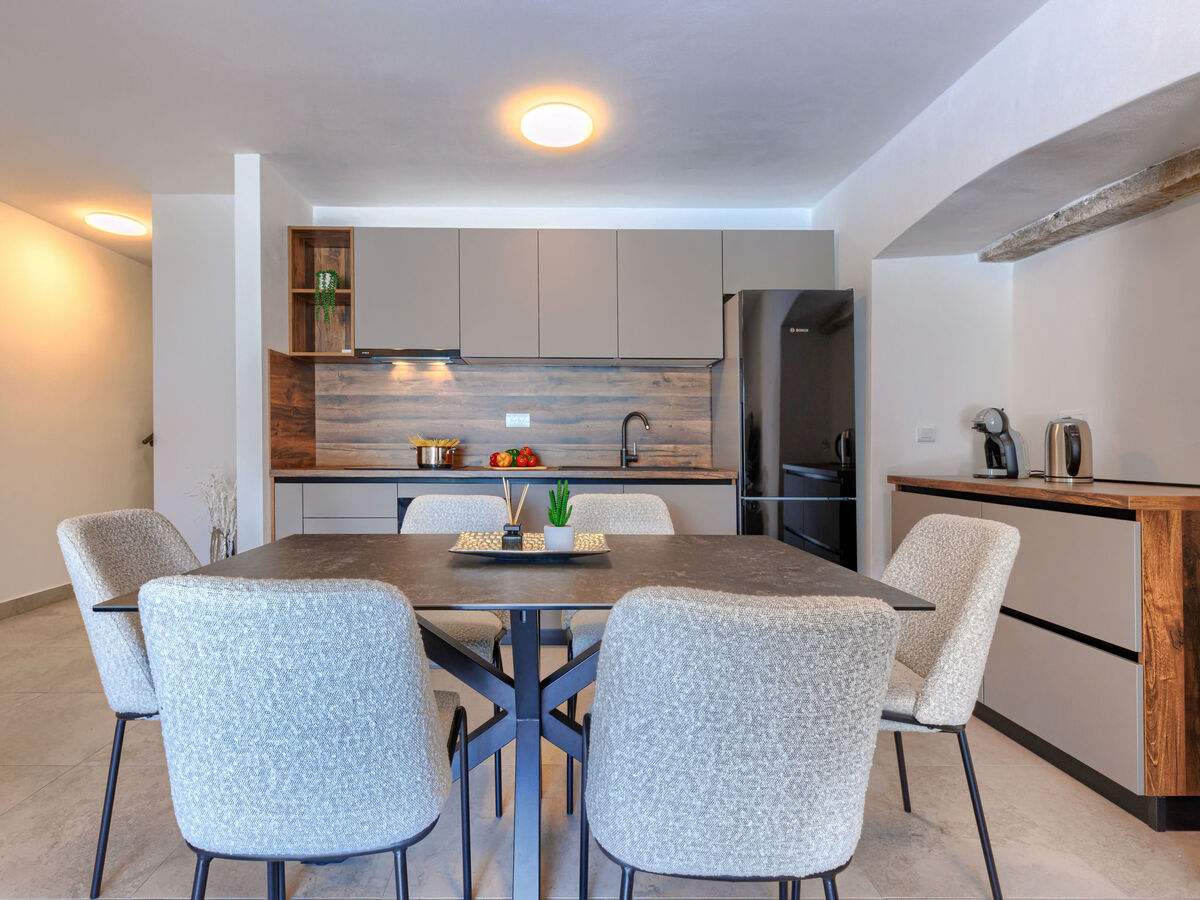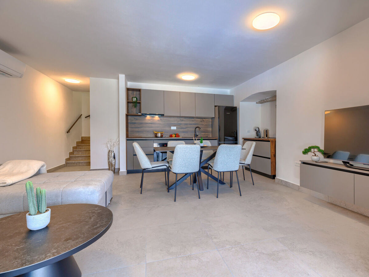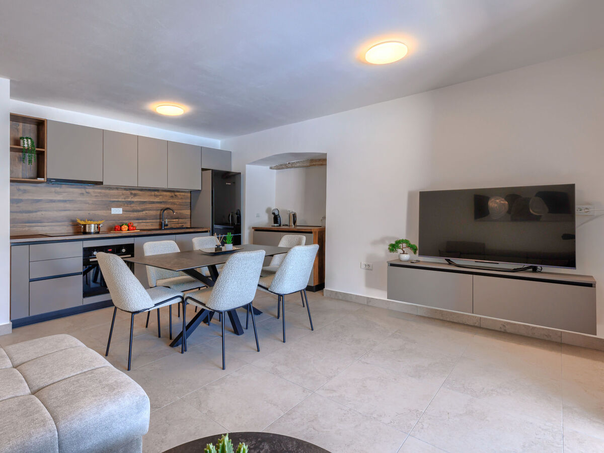 Complètement rénovée en 2024, aménagement de style et plaisant: séjour/salle à manger avec TV (satellite) (écran plat).