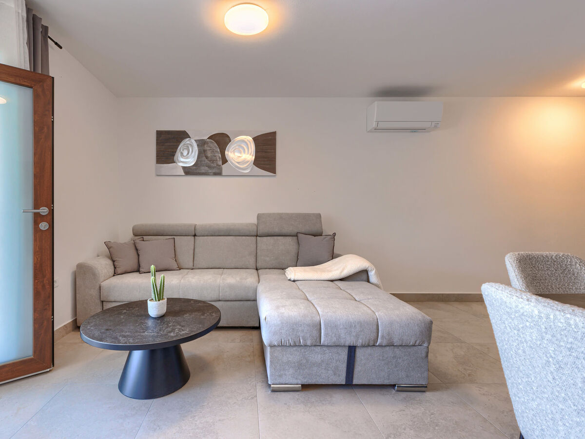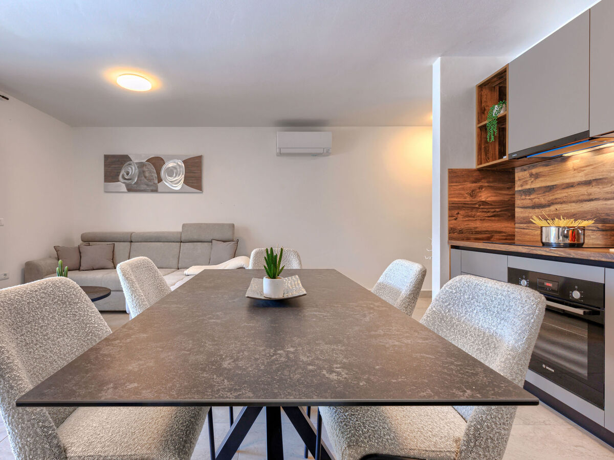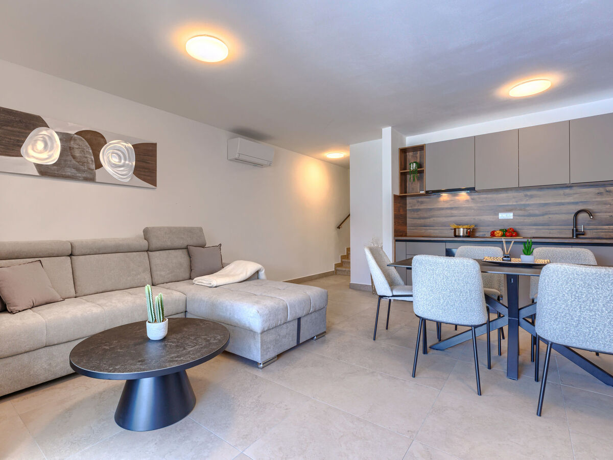 Complètement rénovée en 2024, aménagement de style et plaisant: séjour/salle à manger avec TV (satellite) (écran plat).
