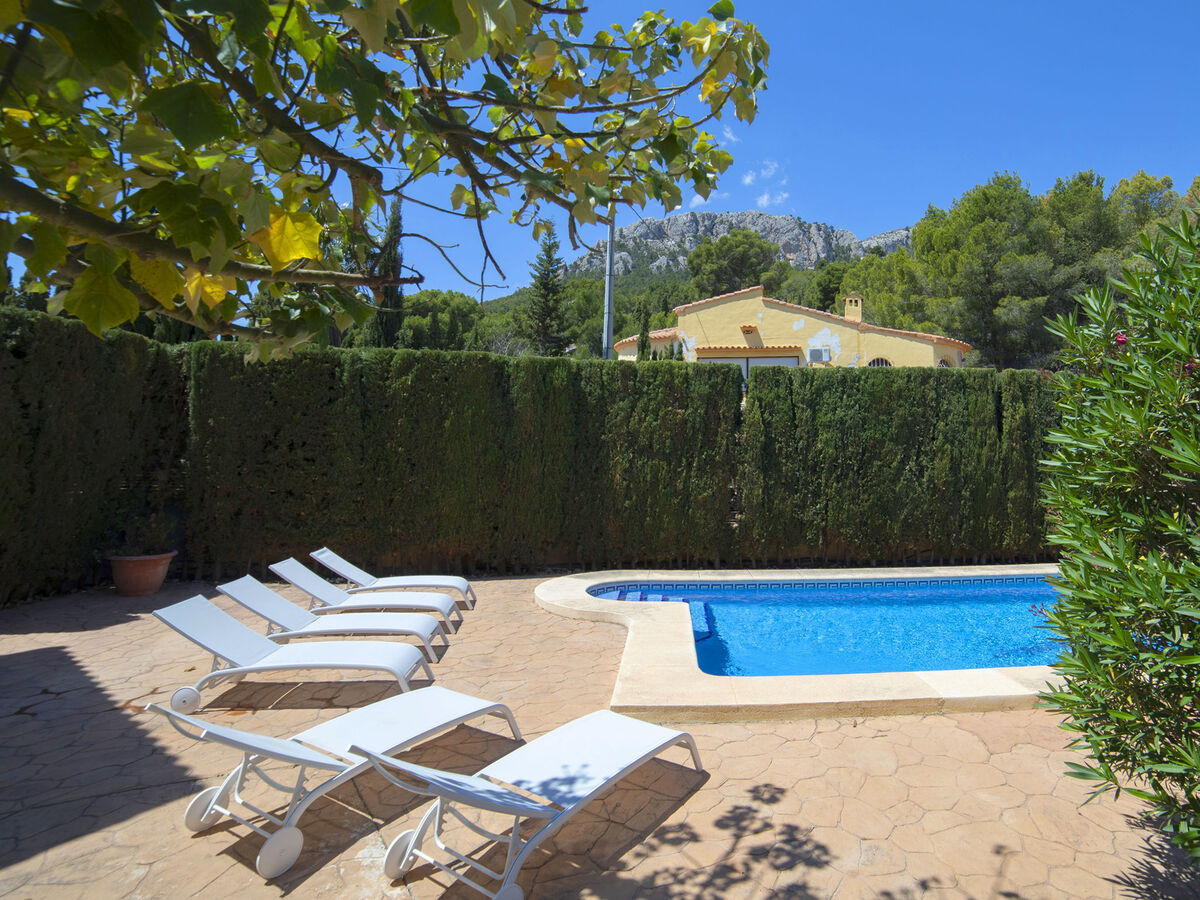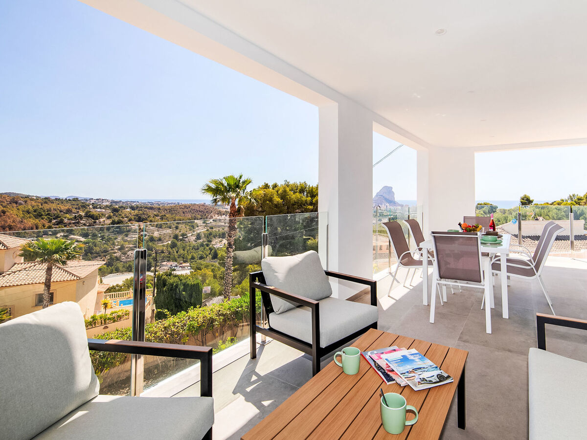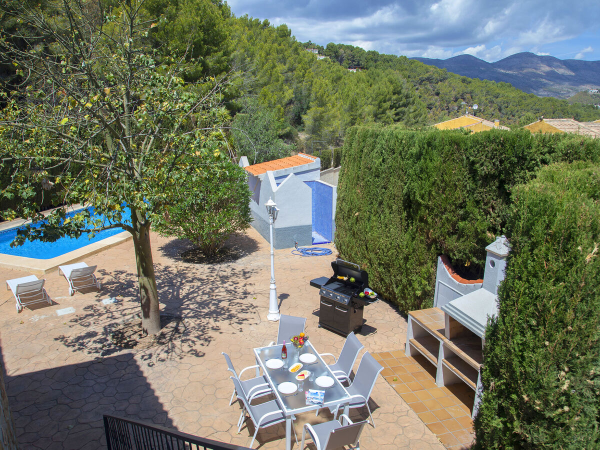 À 3.5 km du centre de Calpe, situation tranquille, ensoleillée, surélevée, à 3.7 km de la mer, dans une impasse.