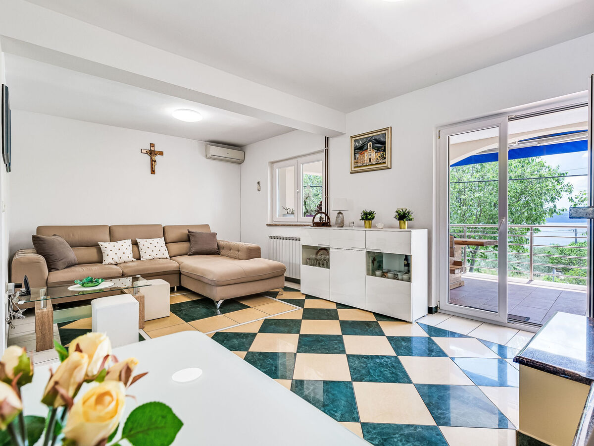 Séjour/salle à manger 14 m2 avec 1 divan-lit, coin-cuisine et TV (satellite) (écran plat) avec 1 grand-lit (160 cm, longueur 200 cm), douche/WC.