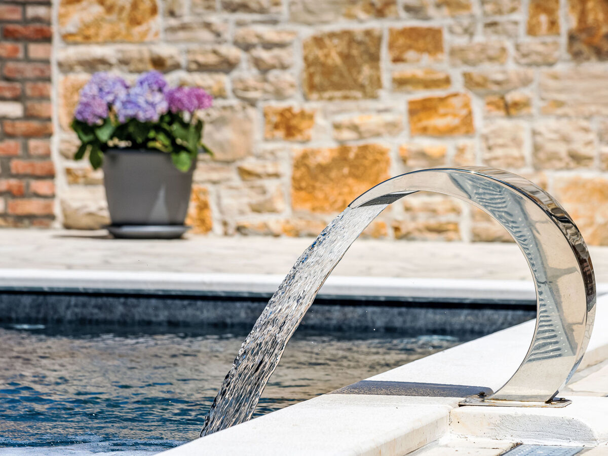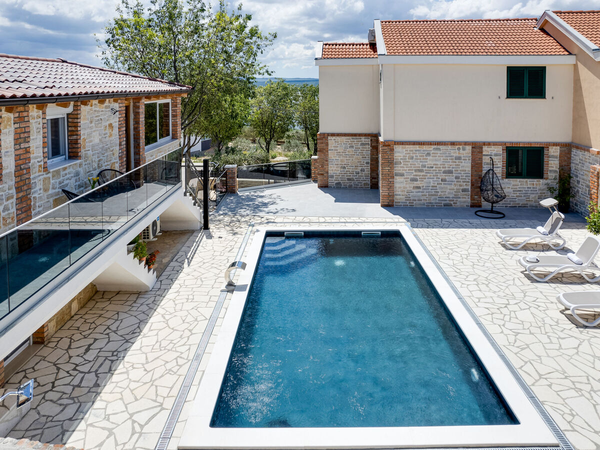 A usage privé: terrain 500 m2 (clôturé), piscine rectangulaire (9 x 4 m, 36 m2, profondeur 150 cm, disponibilité saisonnière: 01.Mai.