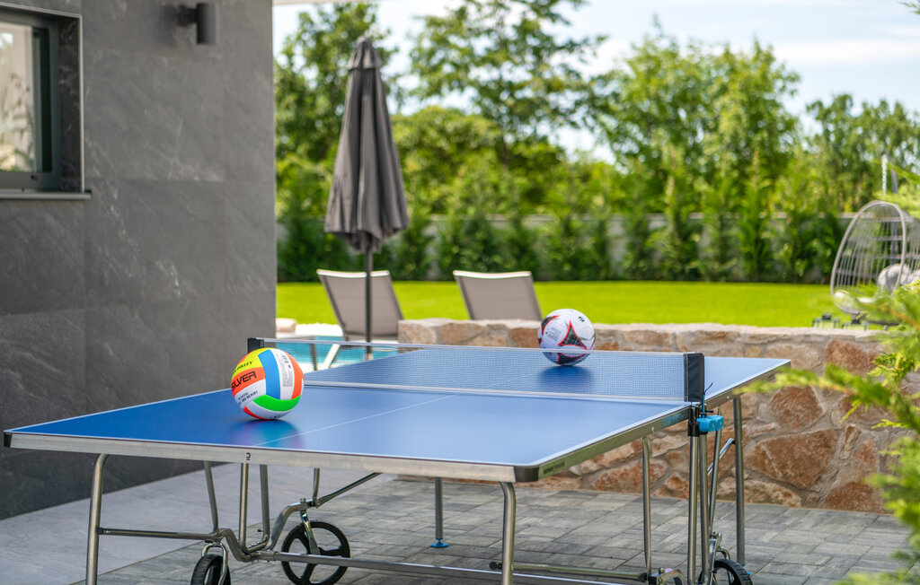 Activités de plein air : Cette location de vacances propose au moins 3 activités de plein air pour toute la famille comme par exemple une table de ping-pong, un trampoline, des boules de pétanques, un panier de basket avec son ballon etc...
