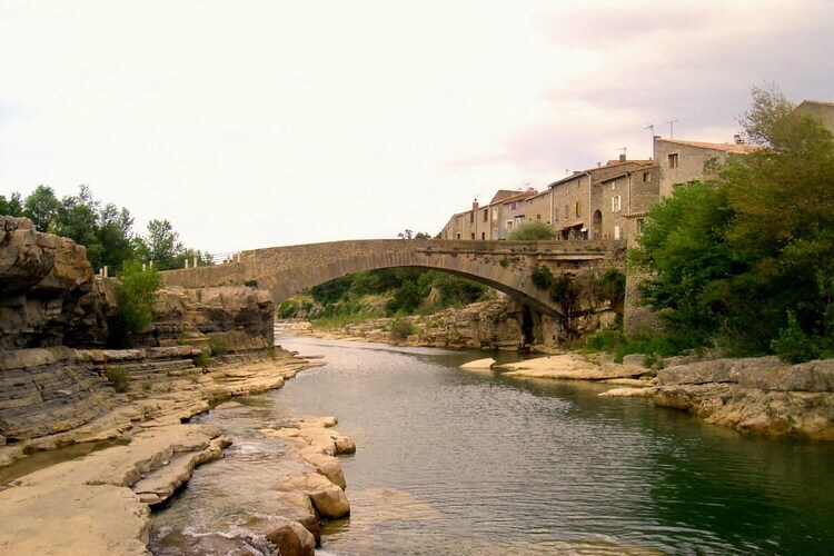 Maison de village idyllique et à la fois artistiquement moderne pouvant accueillir jusqu'à 6 personnes avec cour et balcon sur le toit. Piscine, rivière de baignade et Méditerranée à proximité.