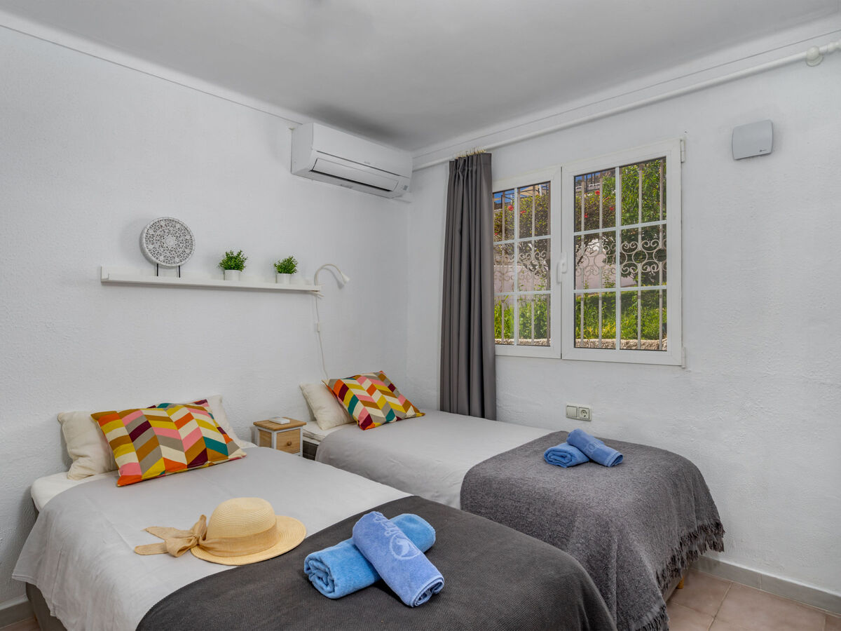 1 chambre avec 2 lits (90 cm, longueur 190 cm), air-conditionné et chauffage à air chaud.