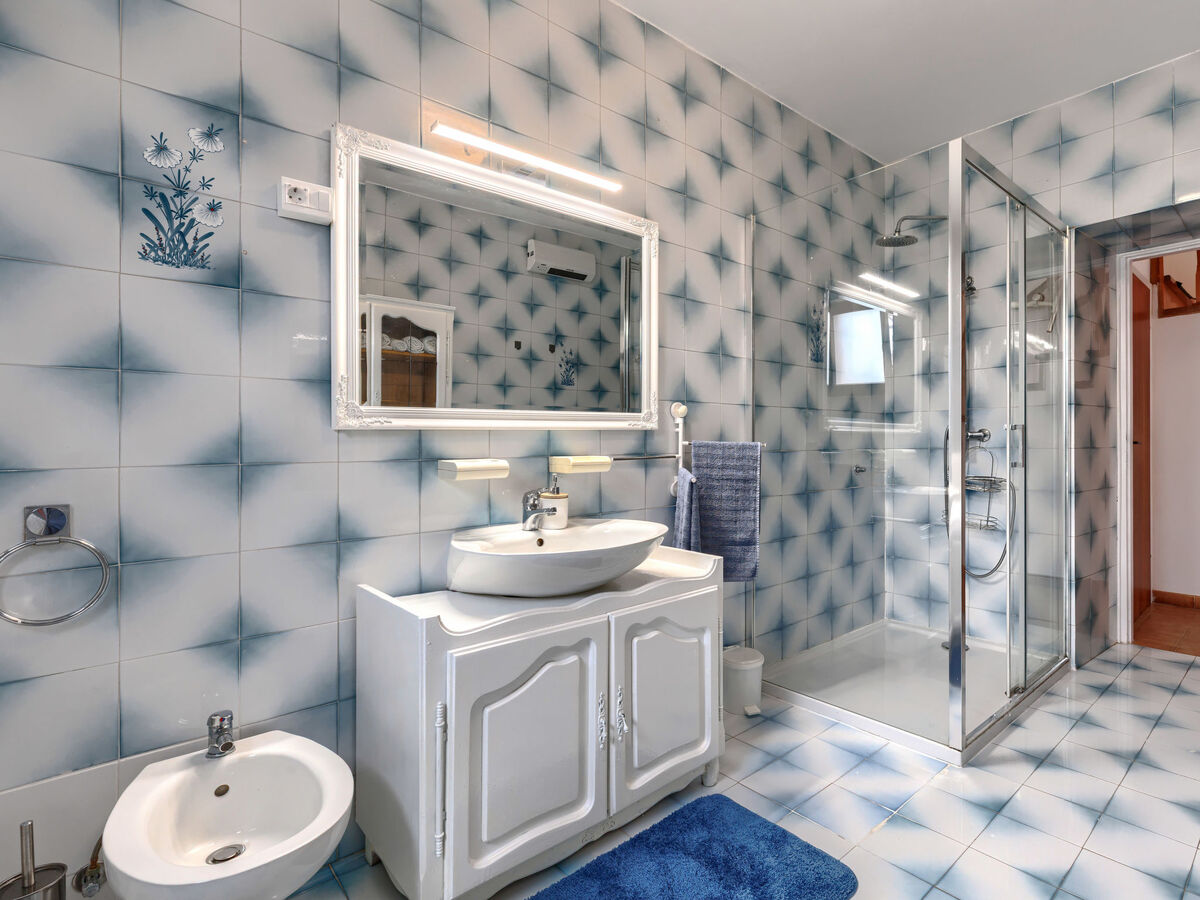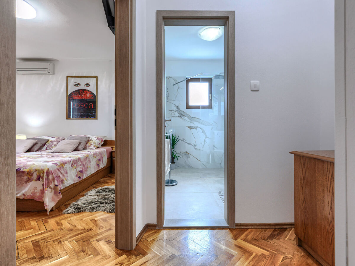 À l'étage supérieur: 1 chambre avec 1 grand-lit (200 cm, longueur 200 cm), TV (satellite) et air-conditionné.