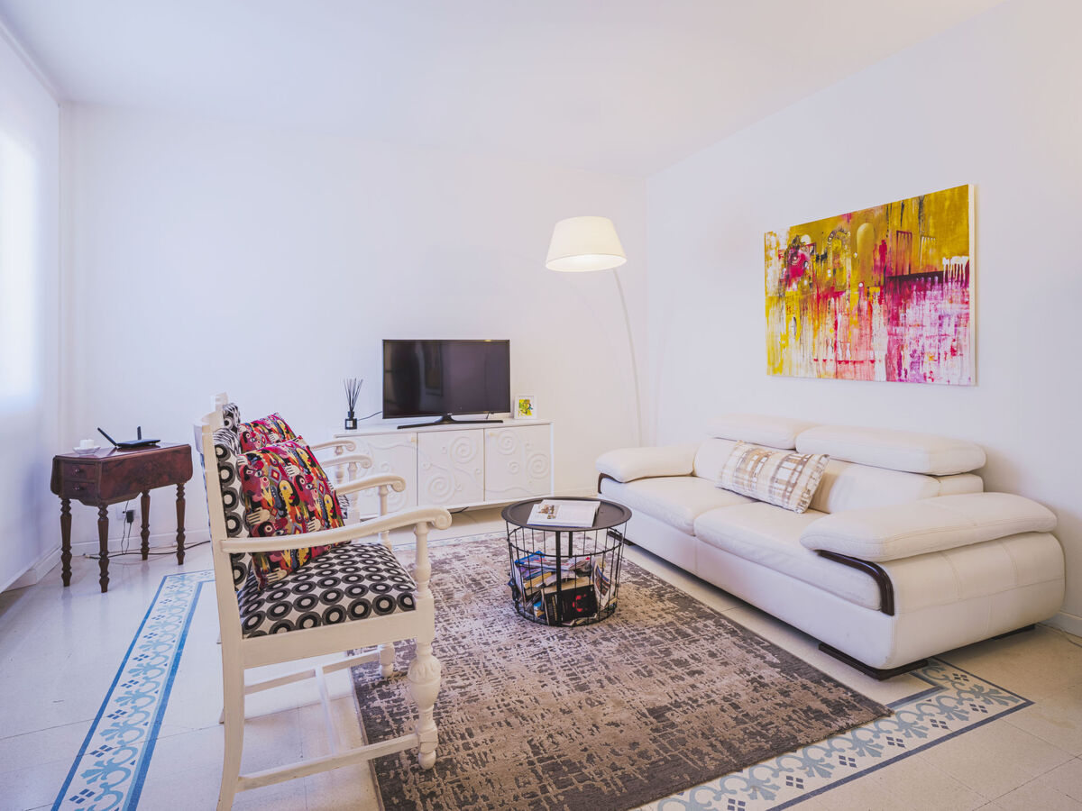 Spacieux et clair, complètement rénovée, aménagement très confortable et moderne: séjour avec TV (écran plat).