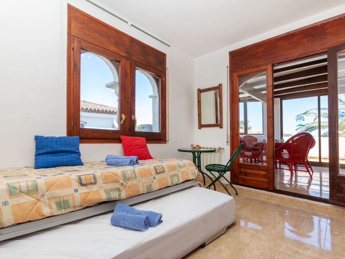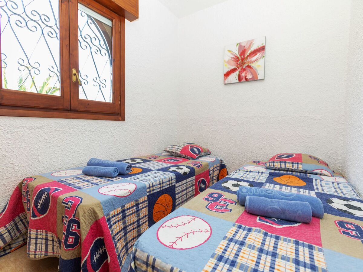 À l'étage supérieur: 1 chambre avec 2 lits (80 cm, longueur 190 cm).