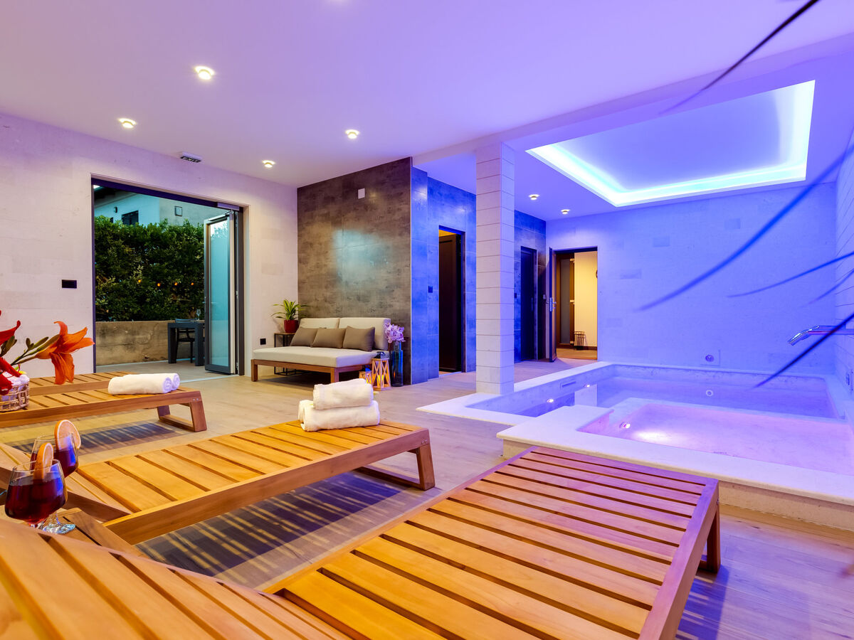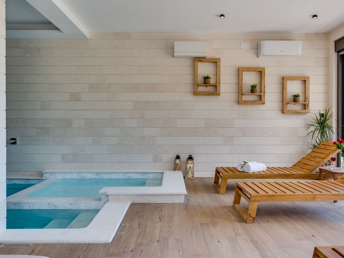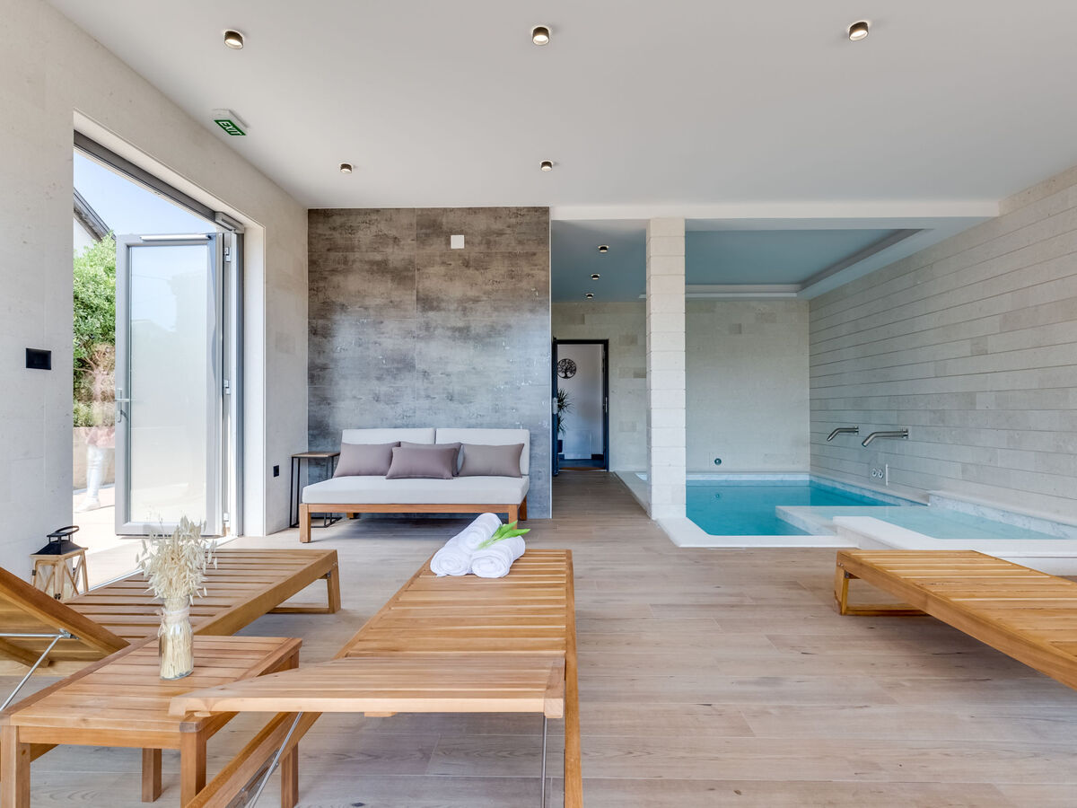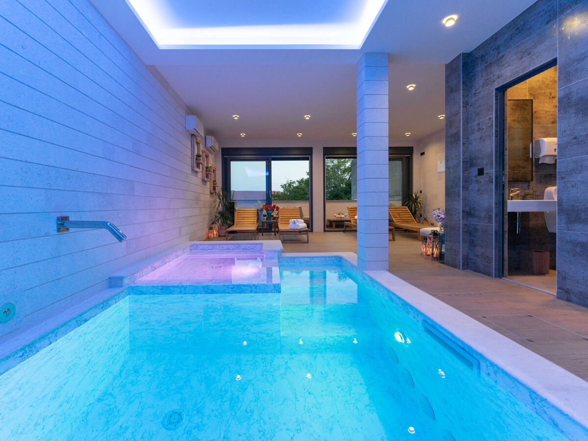 A usage privé: terrain 500 m2, piscine couverte chauffée (17 m2, profondeur 140 cm, disponibilité saisonnière: 01.Jan.
