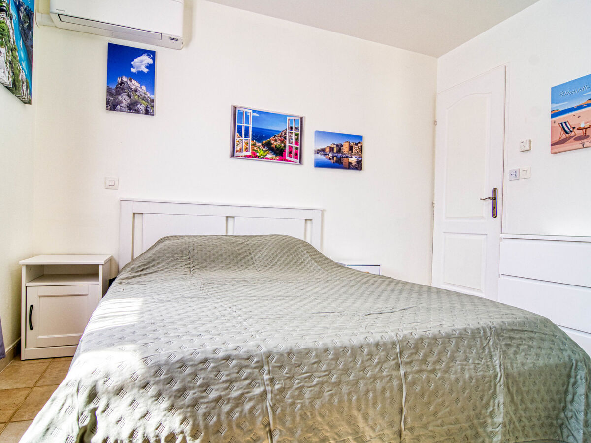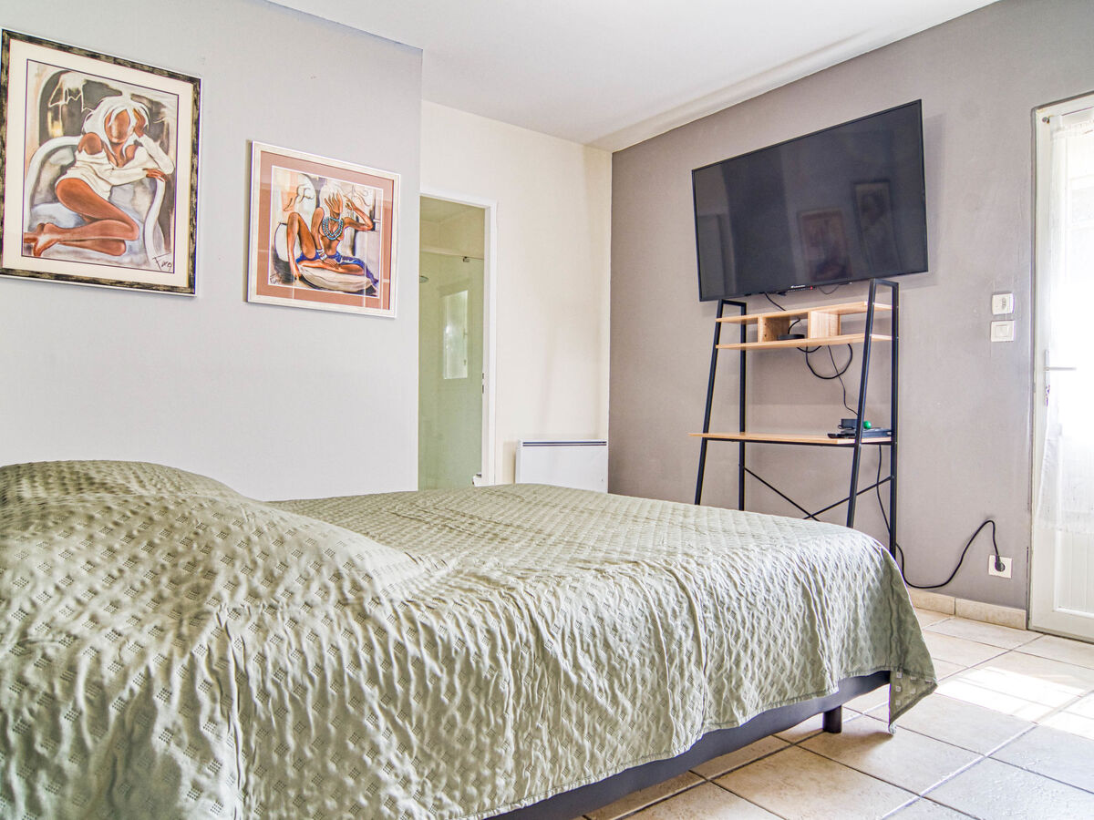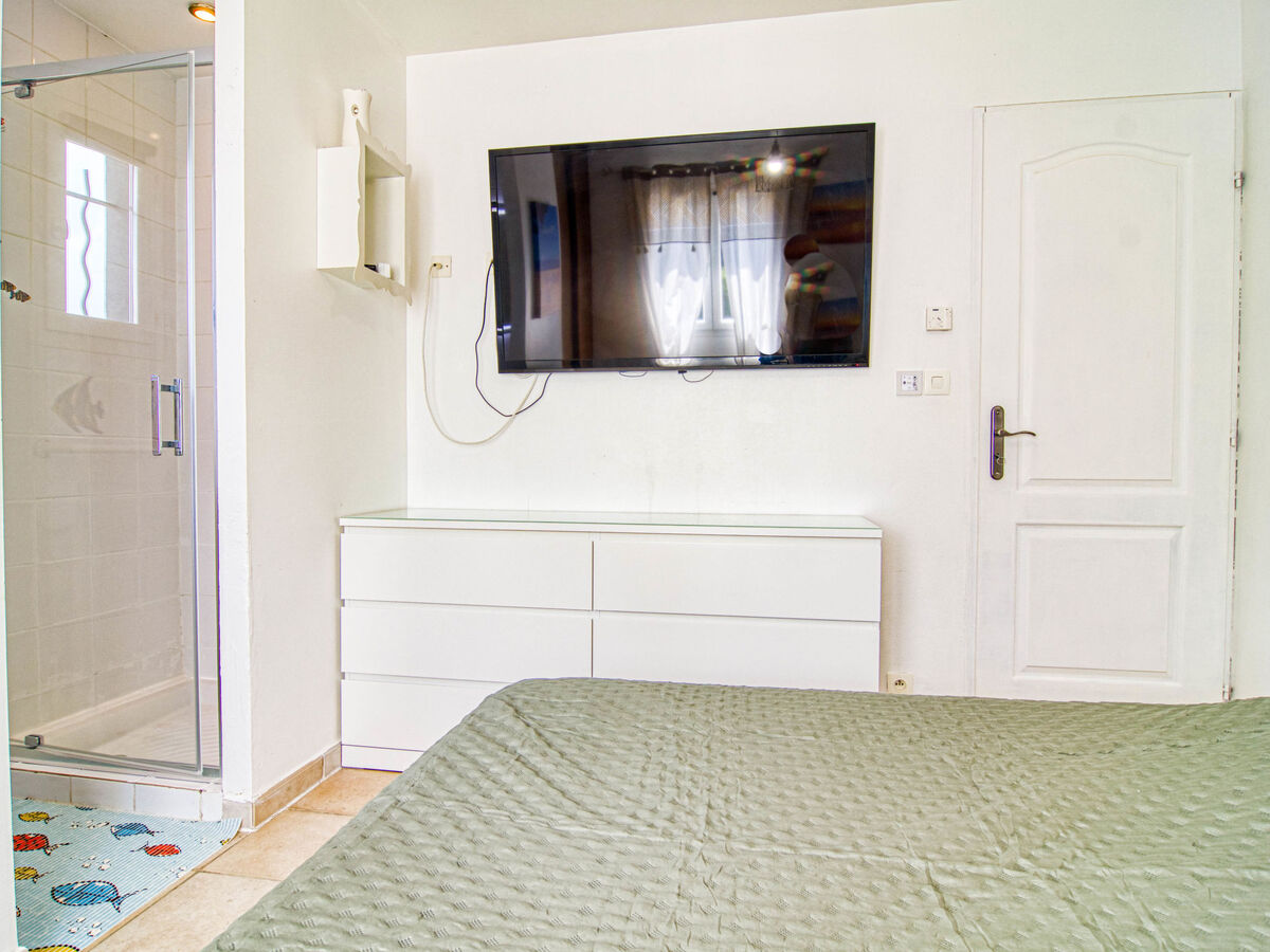 1 chambre avec 1 grand-lit (160 cm, longueur 200 cm), WC séparés et TV (écran plat), air-conditionné et volet roulant électrique.