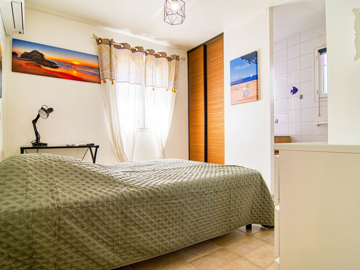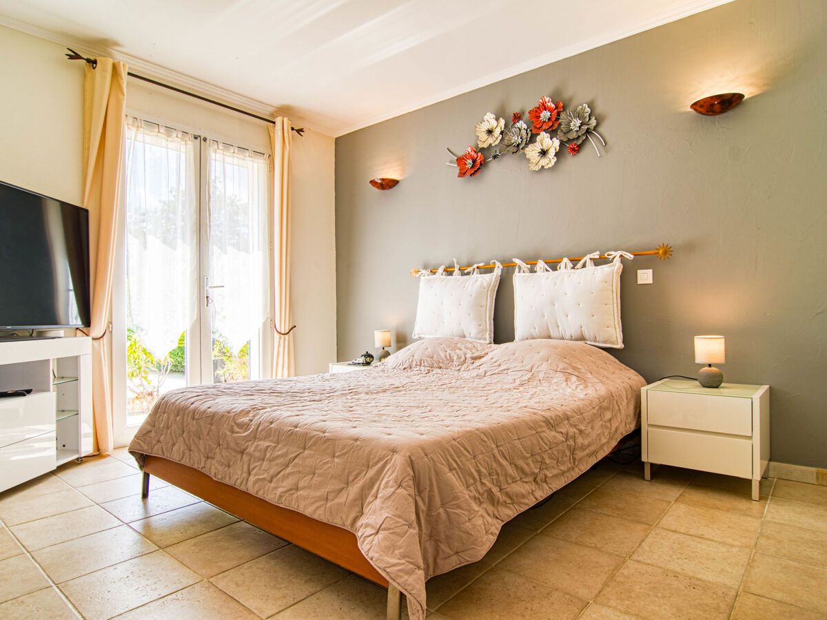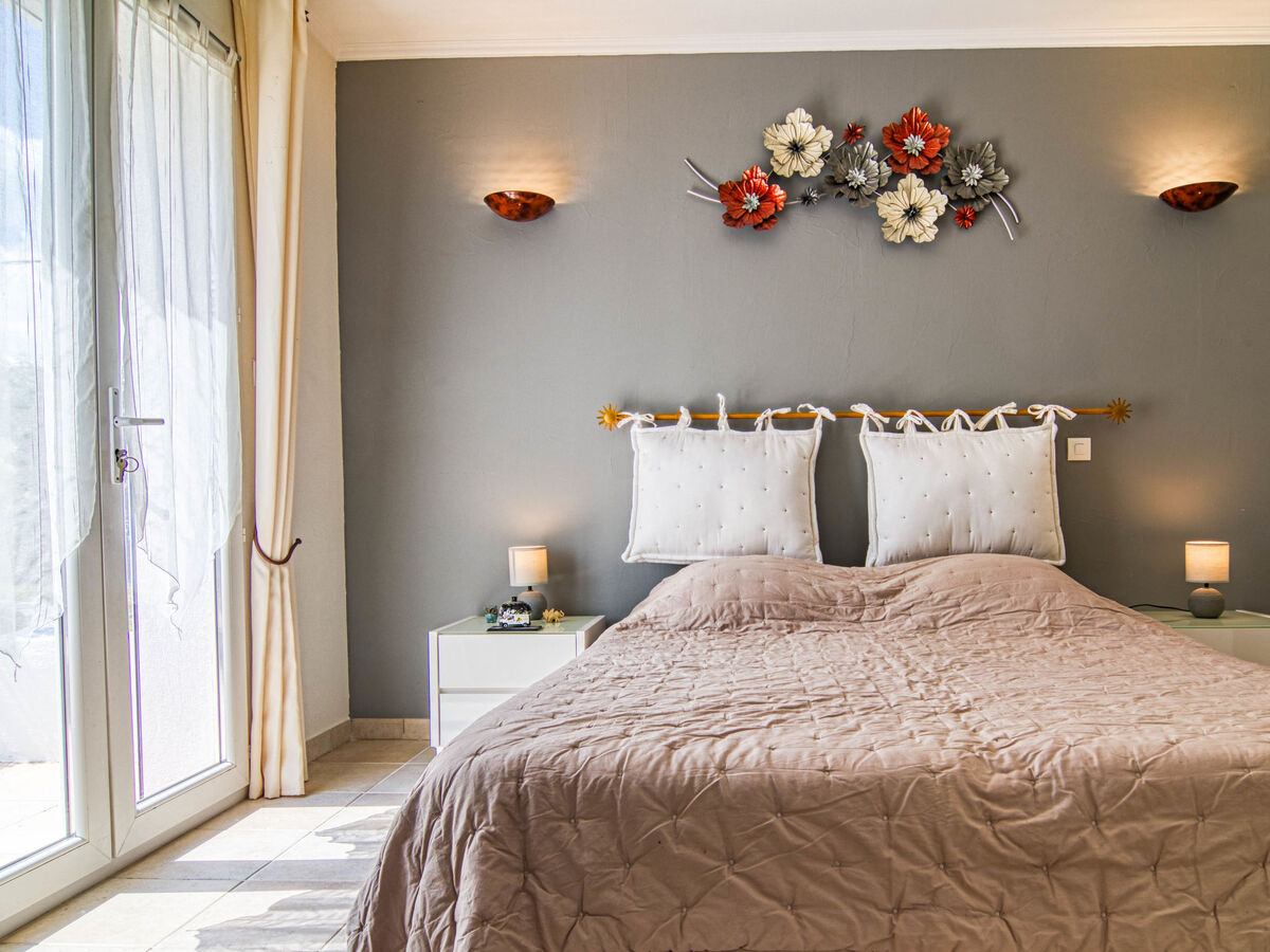 1 chambre avec 1 grand-lit (160 cm, longueur 200 cm), WC séparés et TV (écran plat), air-conditionné et volet roulant électrique.