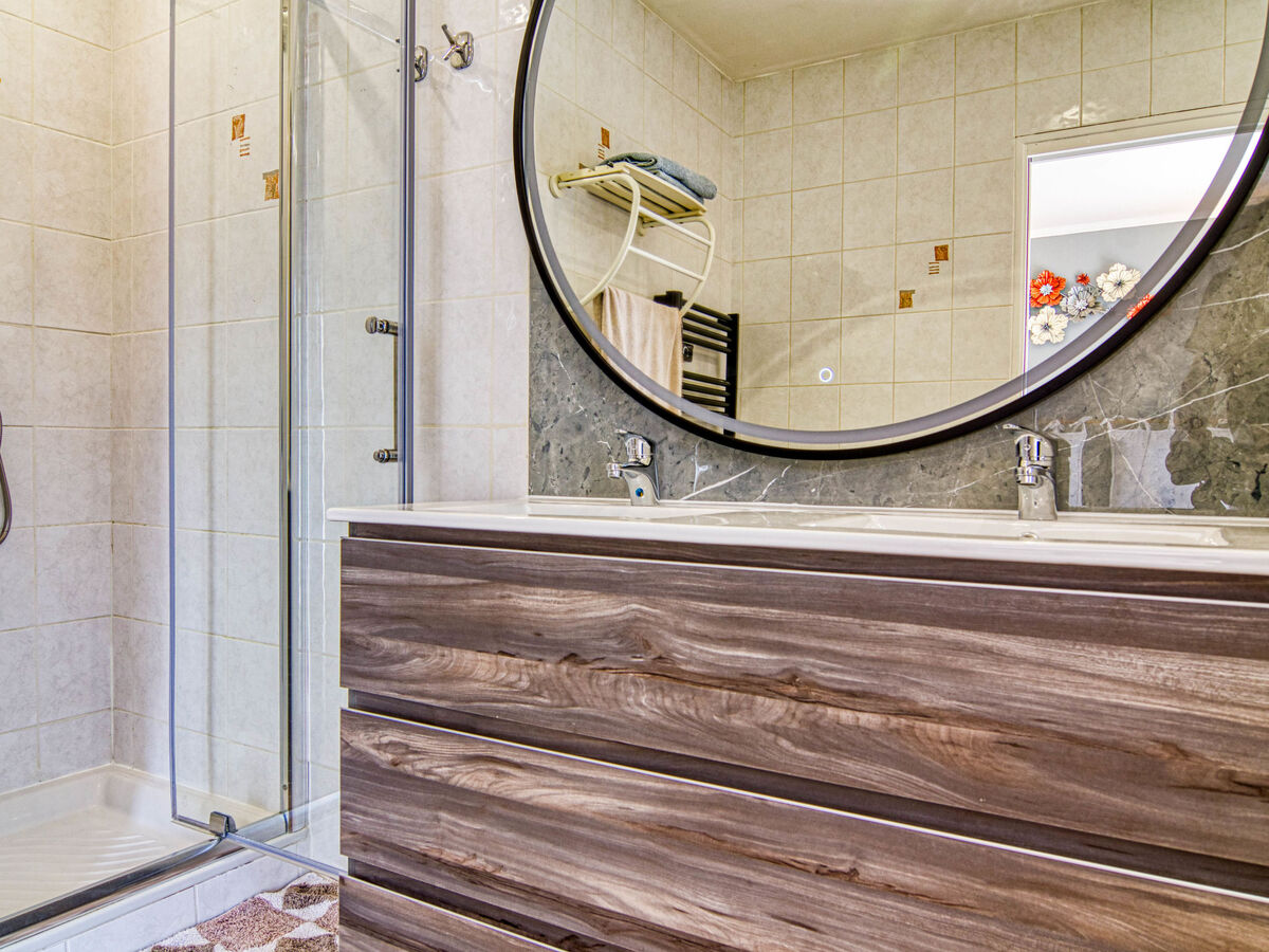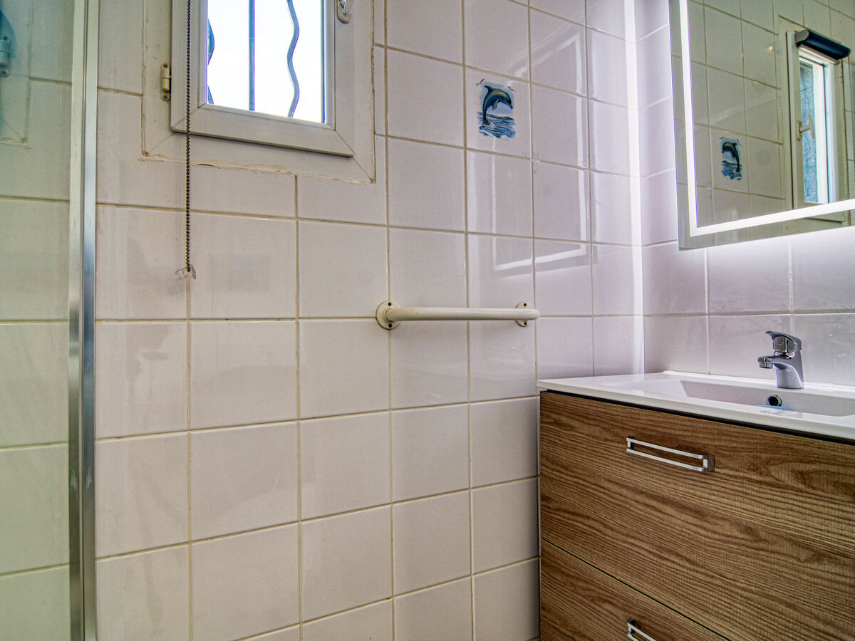 À l'étage supérieur: 2 chambres, chaque chambre avec: 1 grand-lit (140 cm, longueur 190 cm), douche et TV (écran plat), air-conditionné et volet roulant électrique.