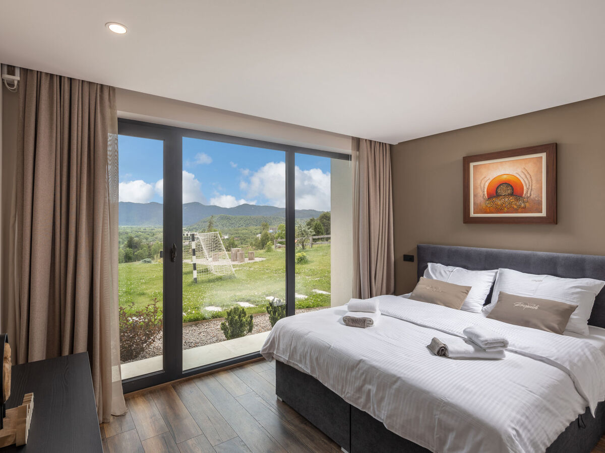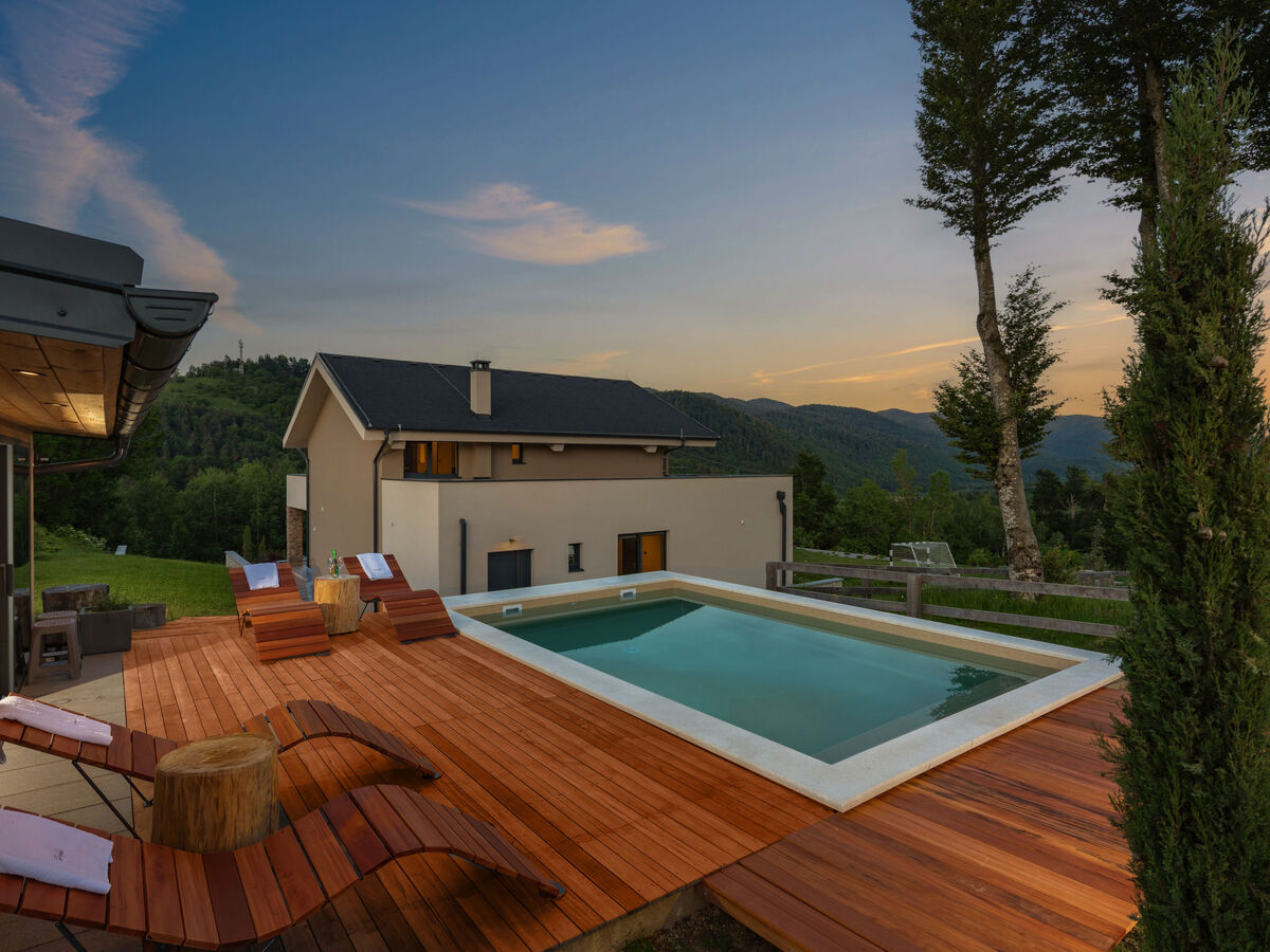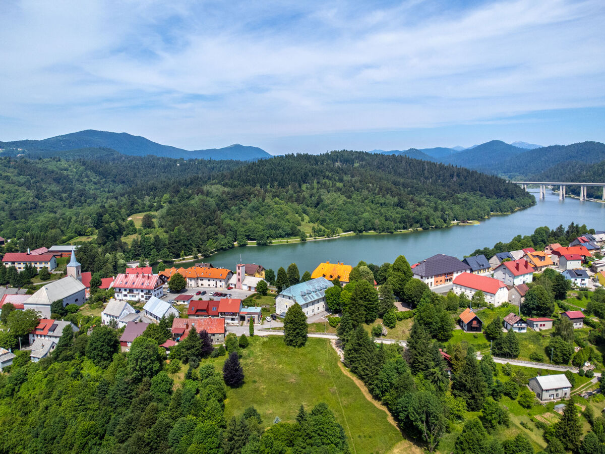 À 800 m du centre de Fužine, situation tranquille, ensoleillée, surélevée, à 27 km de la mer, à 1 km du lac, à 27 km de la plage.